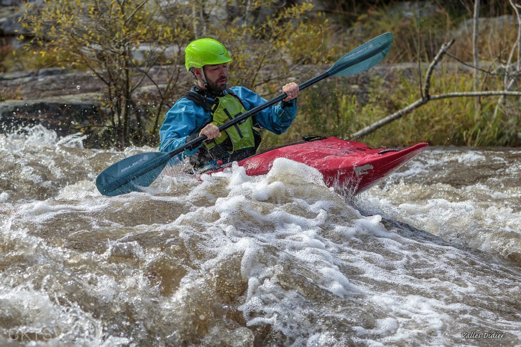 Avec tout ça, Raph et Anna sont arrivés avant nous au camping pour réserver les emplacements. Nous grignotons un bout et nous changeons, puis montons au départ. La pression augmente, les pagayeurs s’échauffent, les achats de dernière minute sont faits, et c’est parti pour notre joyeuse troupe avec un temps favorable puisque les rayons du soleil chatoient sur le feuillage automnal.