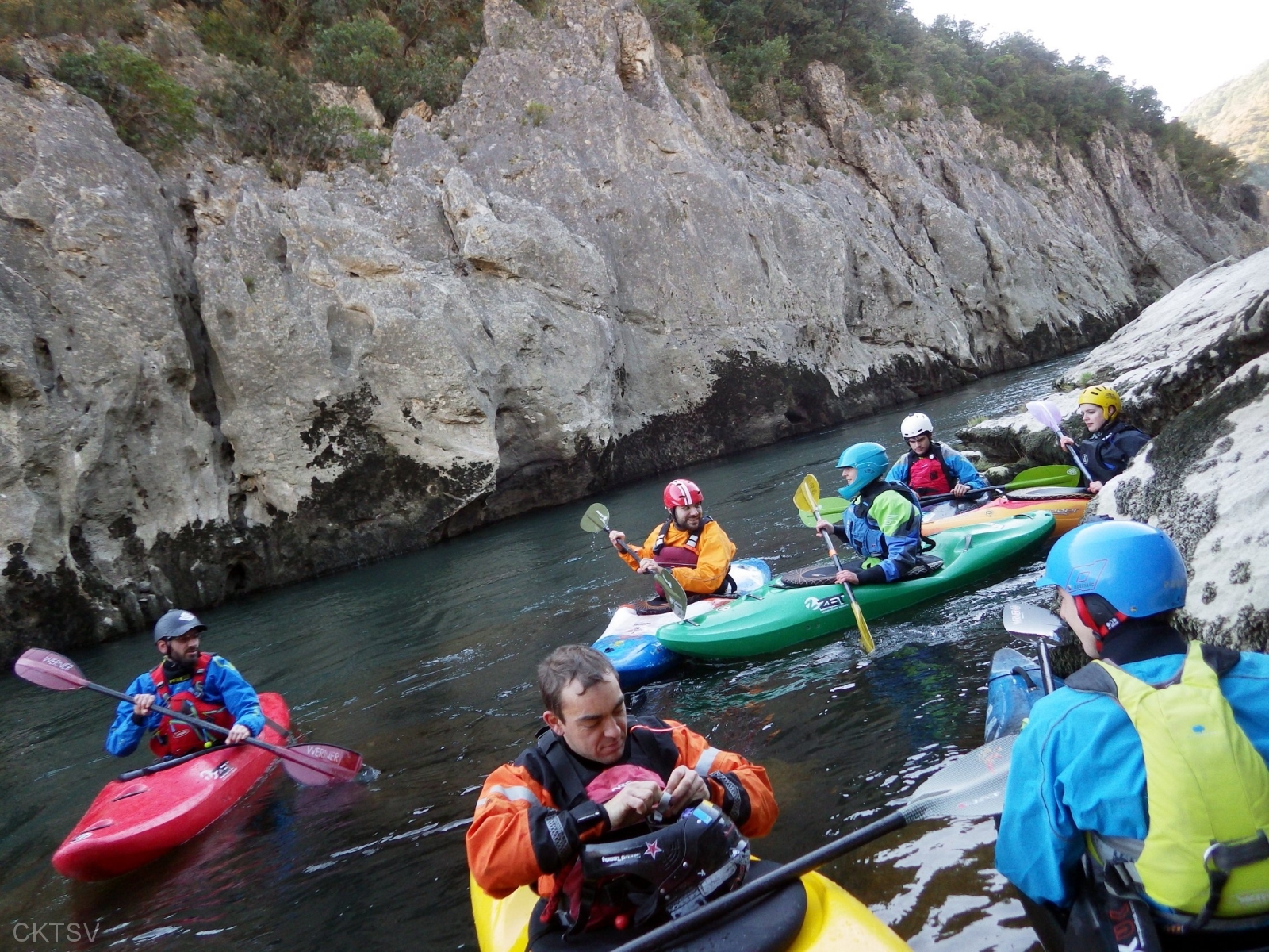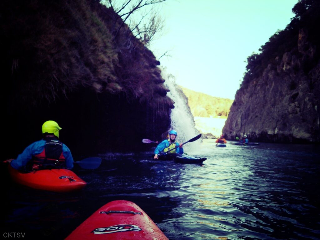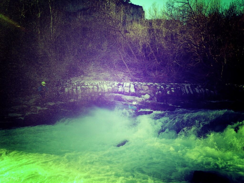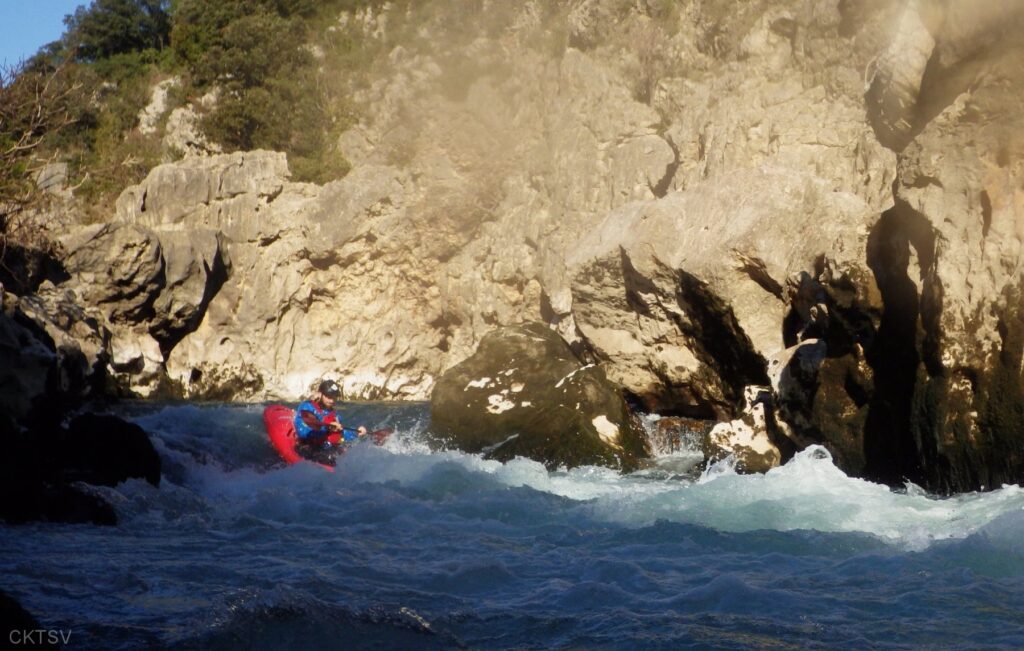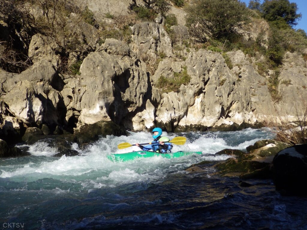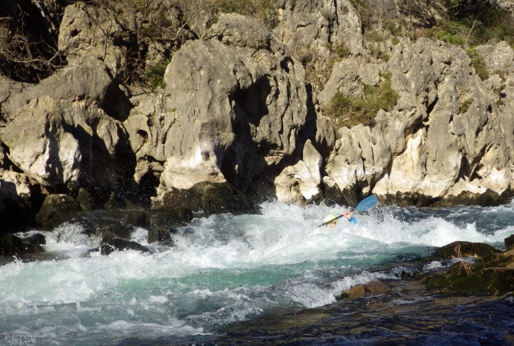C’est l’histoire d’un kayakiste qui déprime. L’hiver qui avait si bien commencé est maintenant désespérément sec. Plus de pluies depuis 1 mois, plus de fontes depuis la dernière Semine. La dèche on vous dit. Mais l’espoir renaît soudainement en secouant désespérément la carte Rivermap : oh, une rivière en eau, là-bas, dans le sud ! Comme une bouteille à la mer, un mail est lancé et, miracle ! des kayakistes répondent ! 1 d’abord, puis 2. A 24h du départ, on est à 3 selon la Police, 4 selon les organisateurs. Le jour J, 9 personnes et 1 chien sont là pour se frotter aux gorges du Diable, énième démonstration expérimentale de la Théorie de la Pomme (se reporter à la publication « Agout 2017 » concernant cette belle découverte, prix Nobel en sciences sociales du kayakiste).