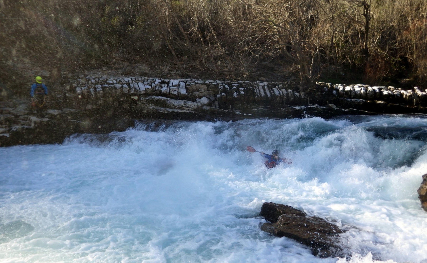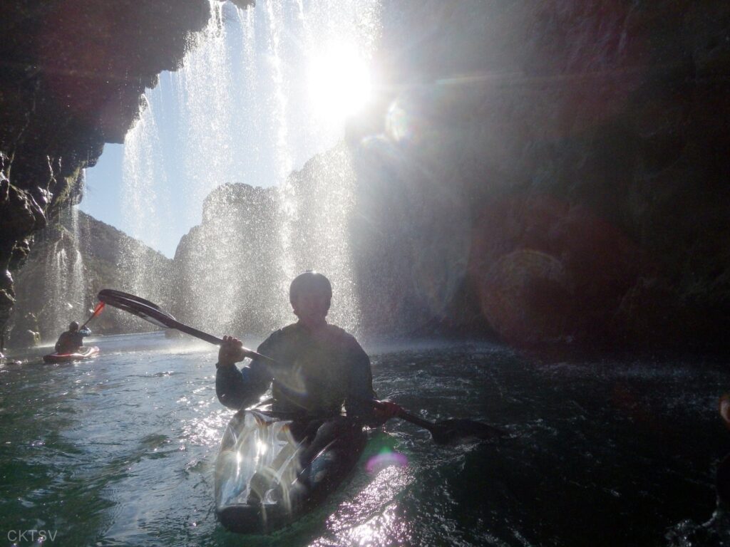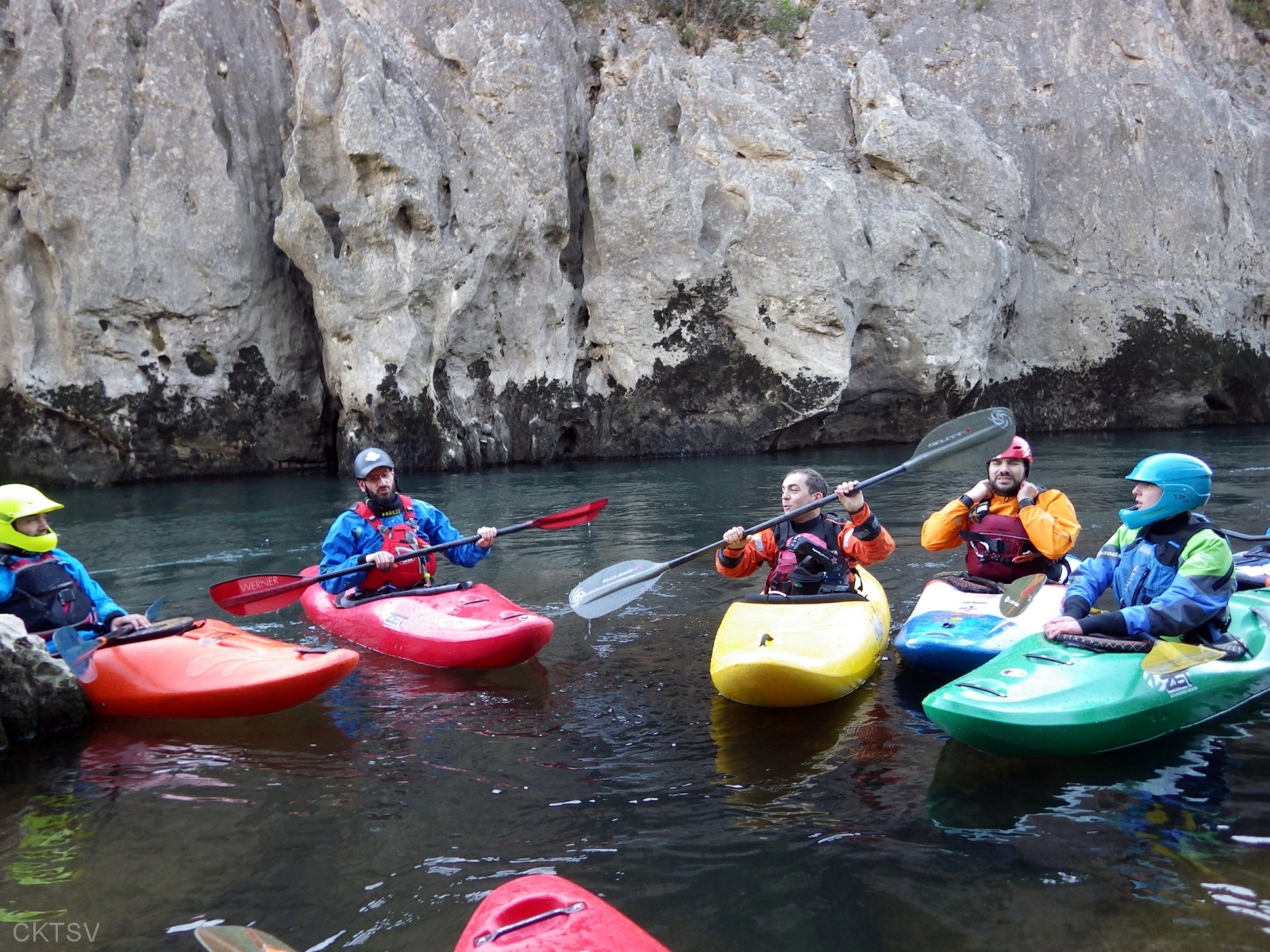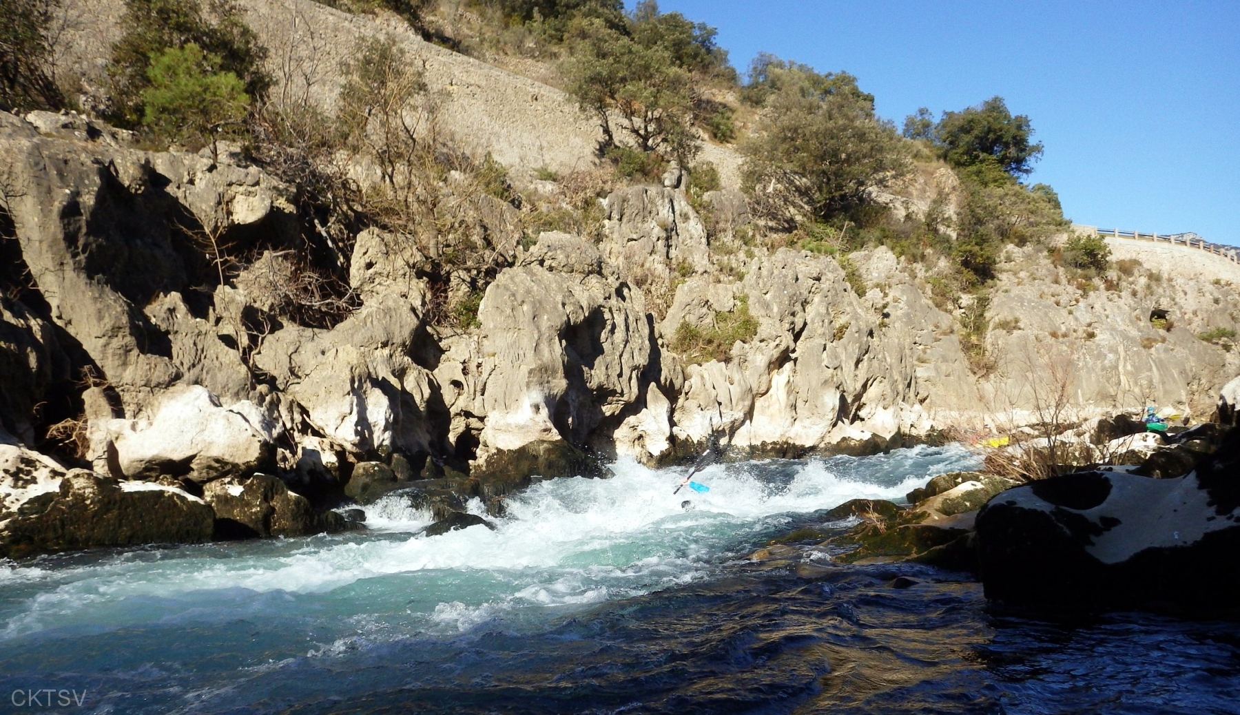 C’est l’histoire d’un kayakiste qui déprime. L’hiver qui avait si bien commencé est maintenant désespérément sec. Plus de pluies depuis 1 mois, plus de fontes depuis la dernière Semine. La dèche on vous dit. Mais l’espoir renaît soudainement en secouant désespérément la carte Rivermap : oh, une rivière en eau, là-bas, dans le sud ! Comme une bouteille à la mer, un mail est lancé et, miracle ! des kayakistes répondent ! 1 d’abord, puis 2. A 24h du départ, on est à 3 selon la Police, 4 selon les organisateurs. Le jour J, 9 personnes et 1 chien sont là pour se frotter aux gorges du Diable, énième démonstration expérimentale de la Théorie de la Pomme (se reporter à la publication « Agout 2017 » concernant cette belle découverte, prix Nobel en sciences sociales du kayakiste).