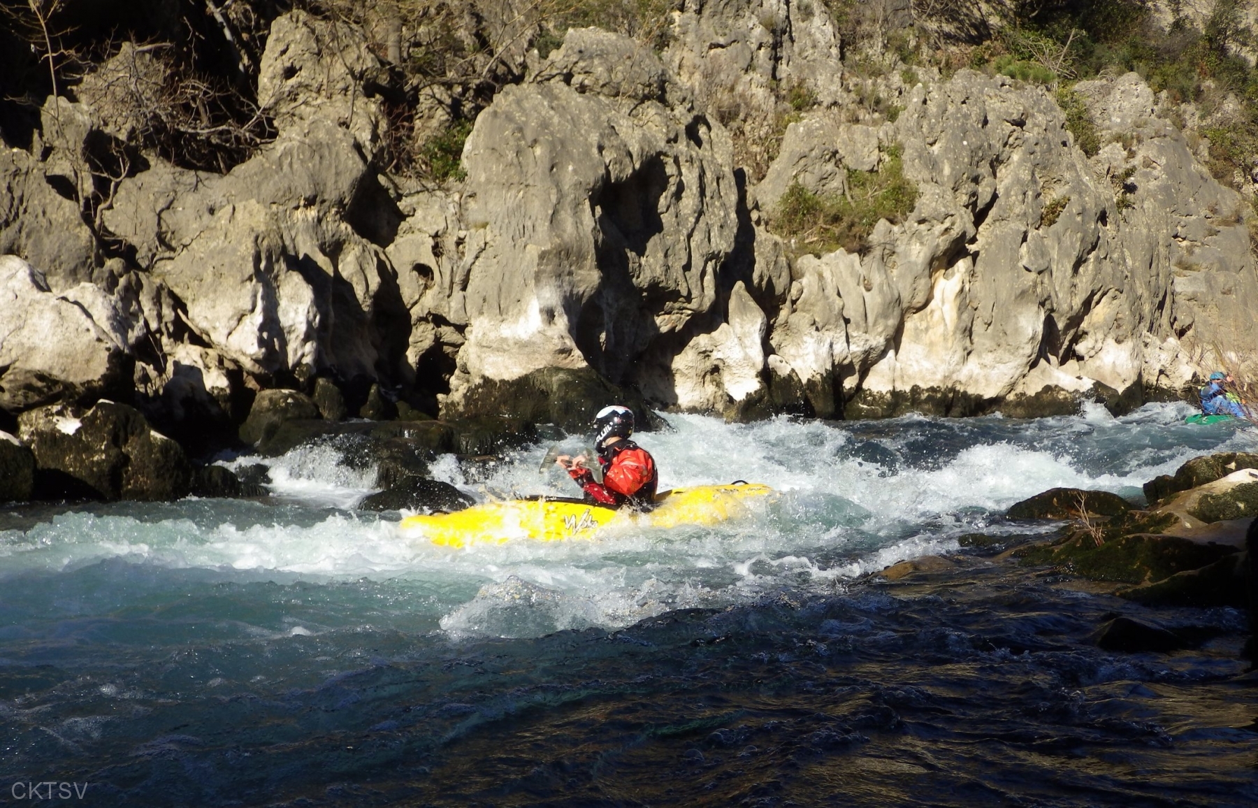 Tellement bien que les plus teigneux lancent une seconde « abrégée », avec embarquement au Fer à cheval et du rythme dans les coups de pagaie. Le CKTSV admire un bain du CKLOM qui pulvérise tous les records : on estime à moins de 3 minutes le temps entre le déjupage et le rembarquement, sans assistance… Nous prenons note et réfléchissons à une session de formation.
