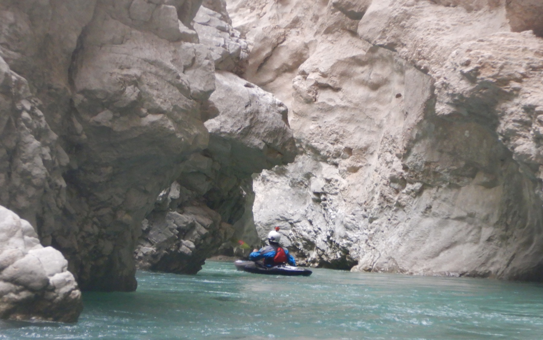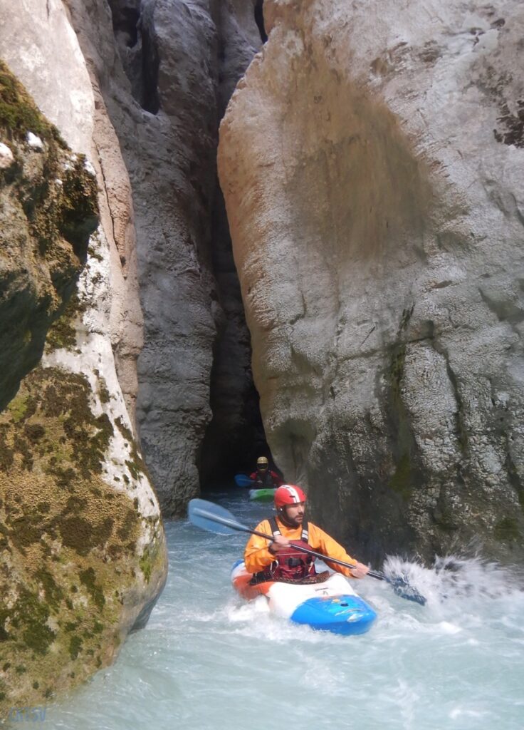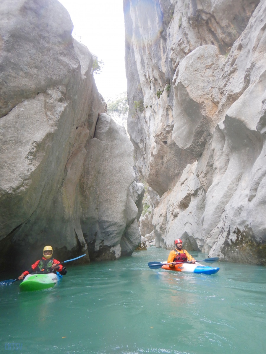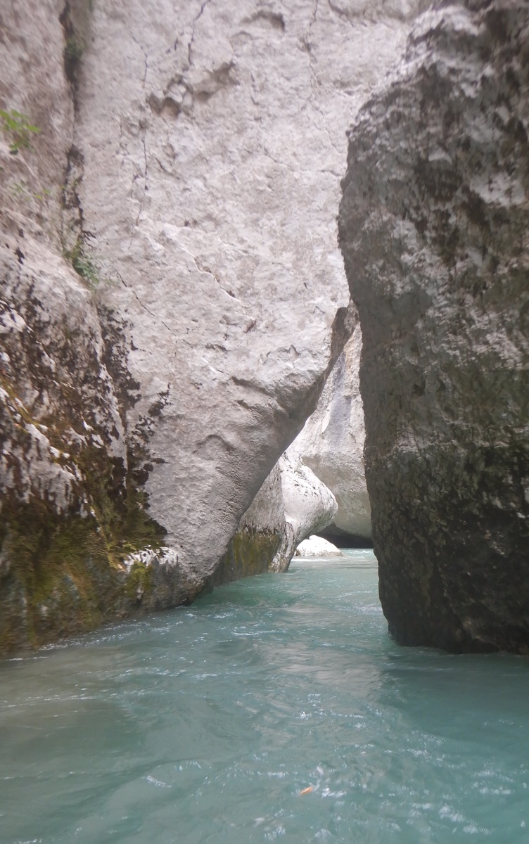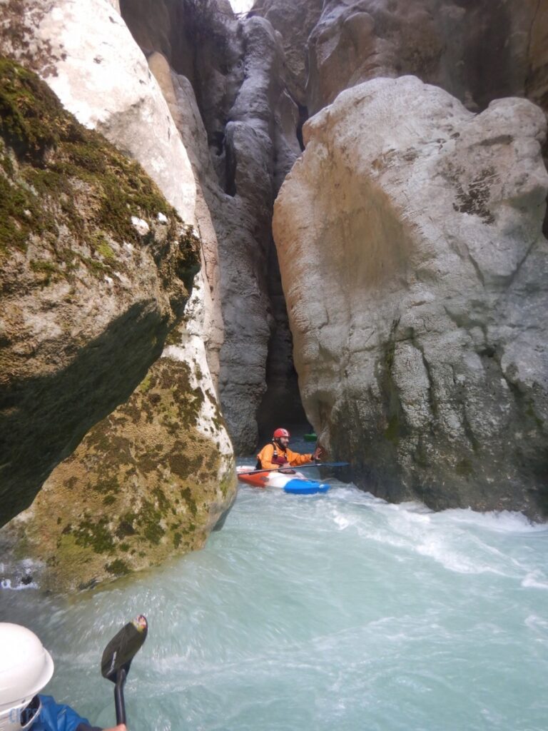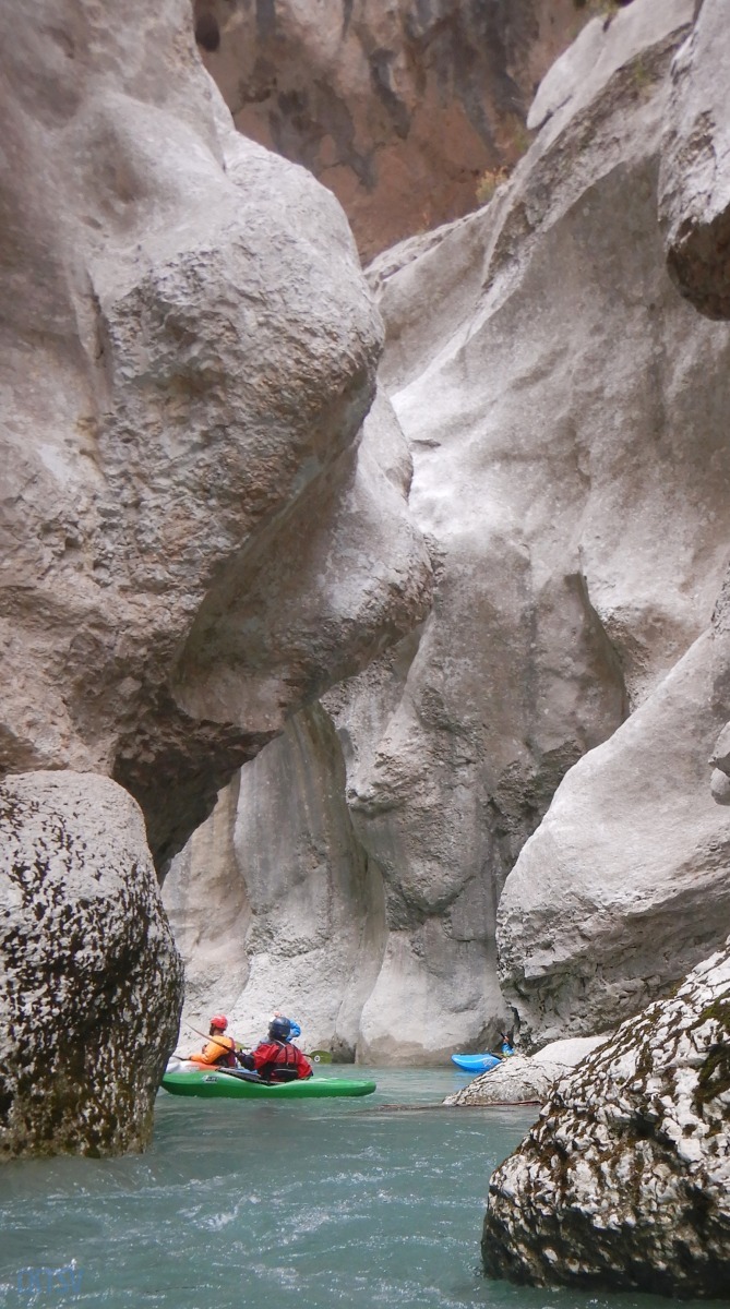Nous poursuivons la navigation enchainant quelques passages, avant de faire une pause rapide pour le repas. Un groupe d’italien nous double et l’ouvreur s’exclame à notre attention : « Imbut ca passe ? ». Qu’est ce qu’on en sait ? L’imbut c’est en aval… Pourtant notre propre guide, sur de lui répond sans sourciller « Oui oui ca passe ! ».