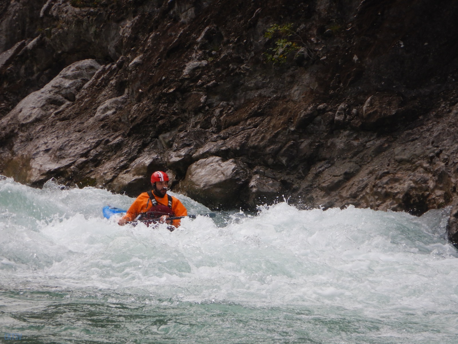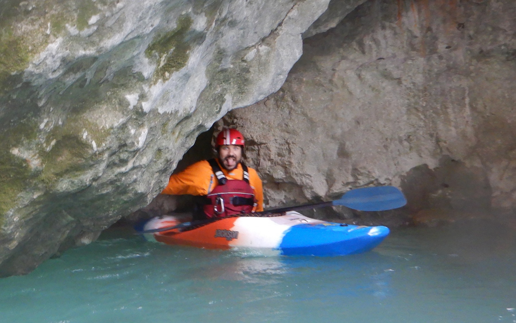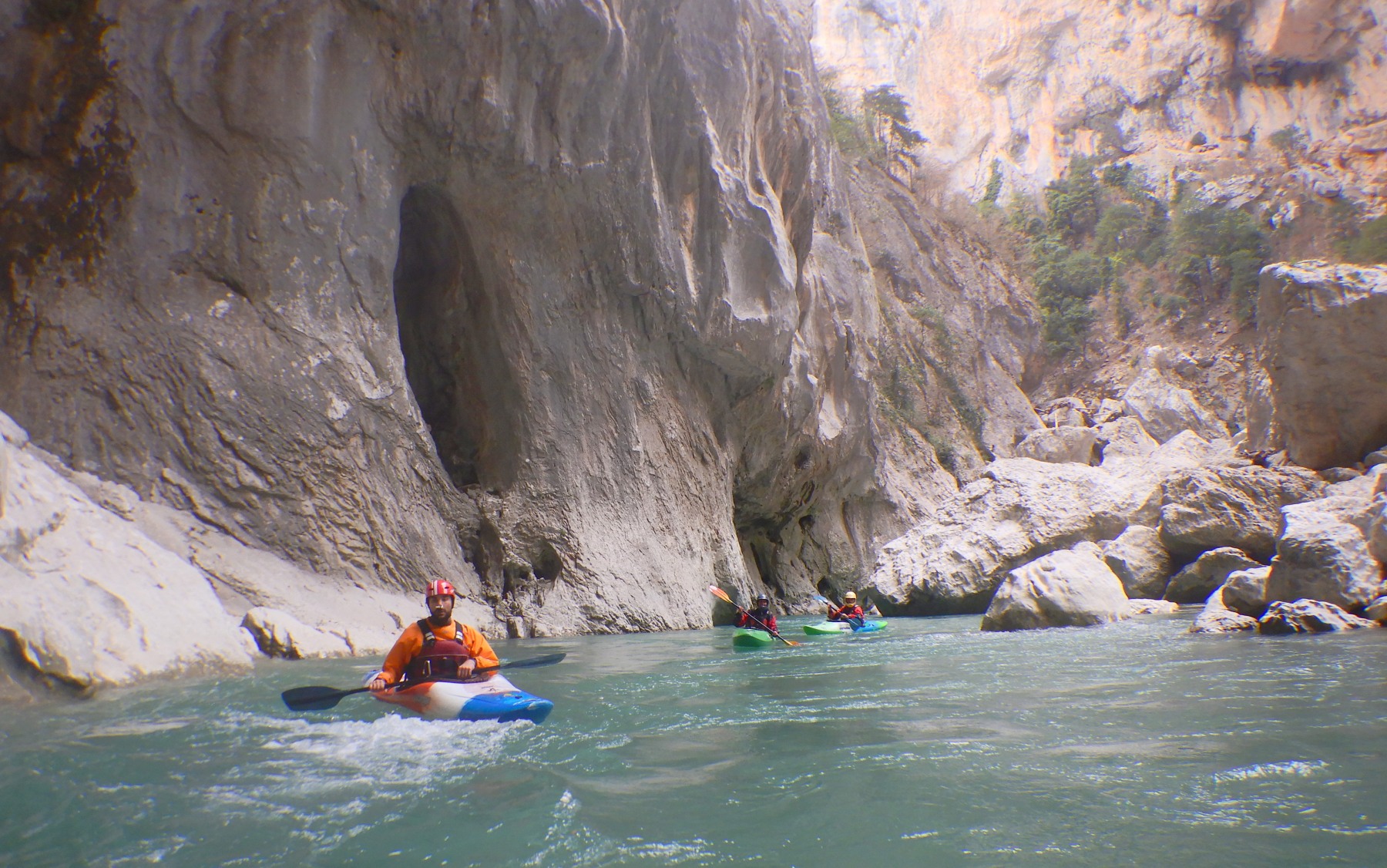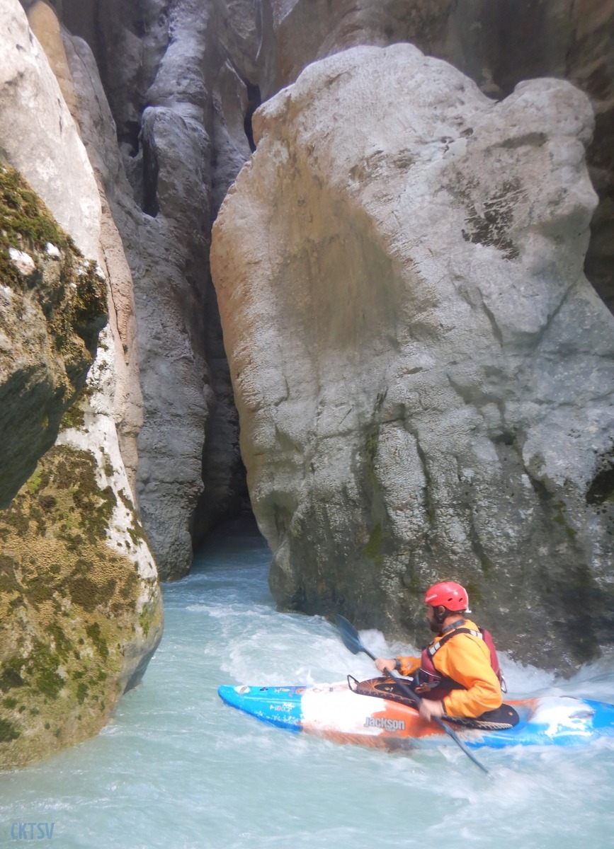 Nous poursuivons la navigation enchainant quelques passages, avant de faire une pause rapide pour le repas. Un groupe d’italien nous double et l’ouvreur s’exclame à notre attention : « Imbut ca passe ? ». Qu’est ce qu’on en sait ? L’imbut c’est en aval… Pourtant notre propre guide, sur de lui répond sans sourciller « Oui oui ca passe ! ».