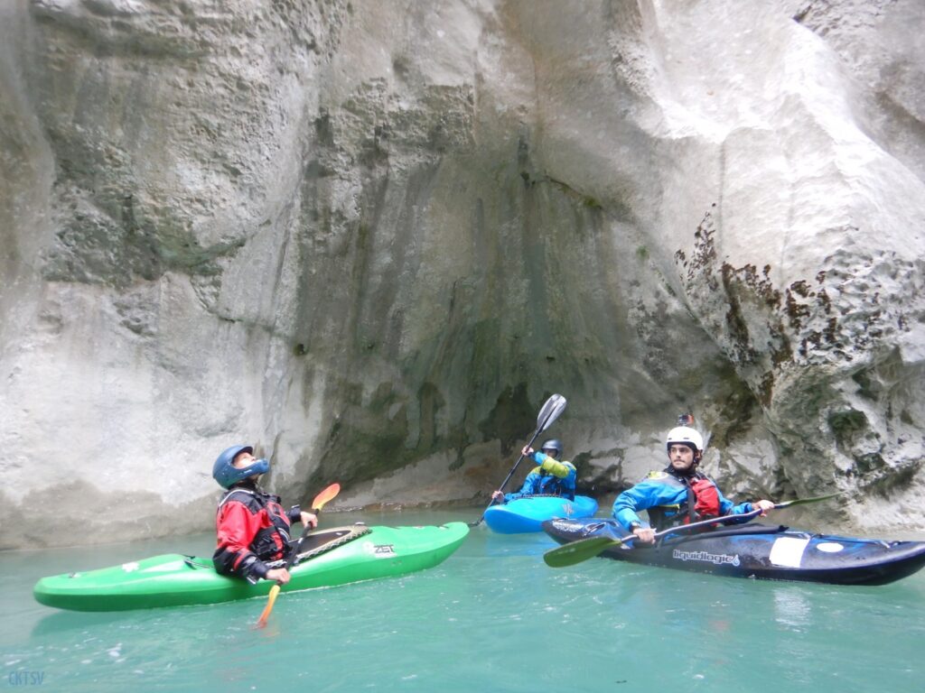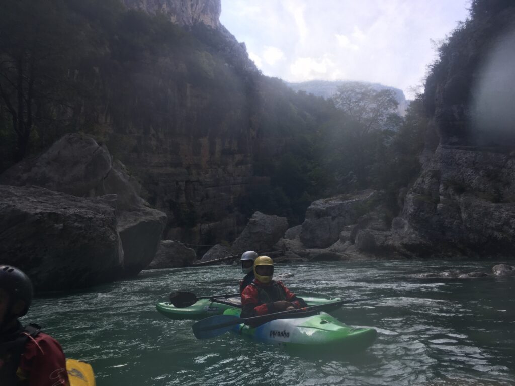Mais n’allons pas trop vite, commençons ce récit de sortie par le début. Ce fut une organisation pleine de rebondissements. Les annonces quant au niveau d’eau du Verdon étaient … fluctuantes, passant de 13m3 à 40m3 en milieu de semaine avant de redescendre sagement à 13m3, 36h avant le départ.