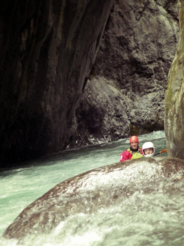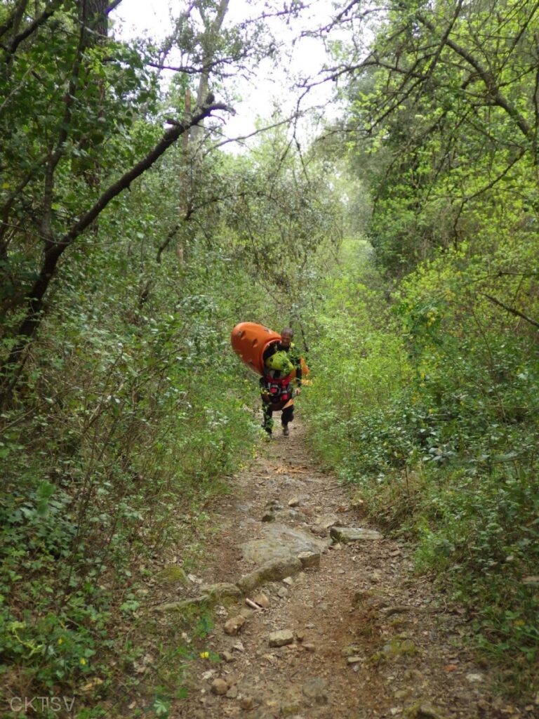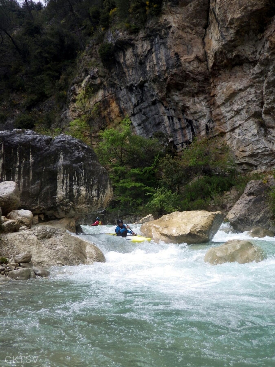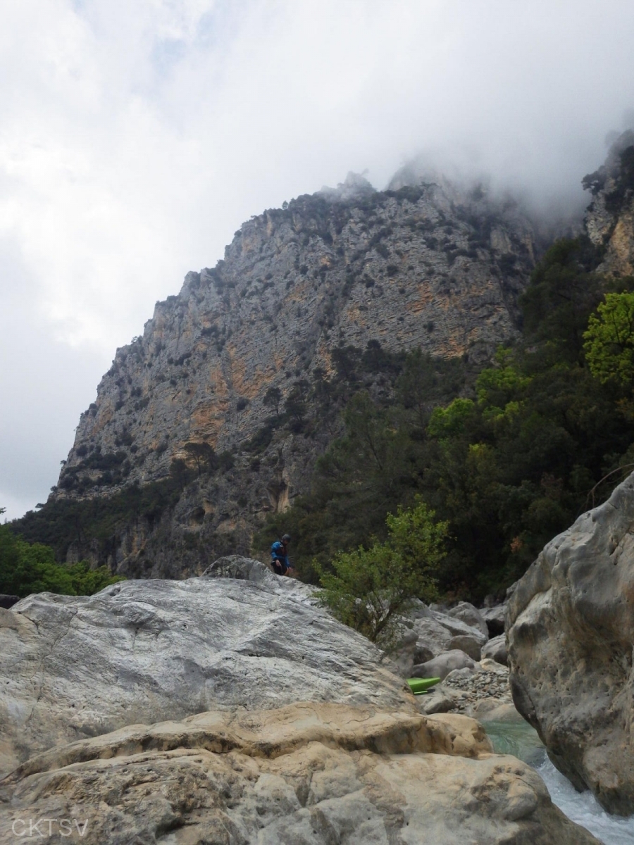 r’ESTERONs nous en amont stoppé par des panneaux propriété privé? Les voisins vigilant? Les menaces d’appel des gendarmes ou crevaisons de pneus? Bien sûr que non, après un portage de 1km en descente cette fois (easy pour nous contrairement à un anciens rugbyman cassé de partout qui sans ça serait venu avec nous, quel dommage!), nous irons dans cette profonde gorge (si tu as lu gorge profonde tu lis mal), certains plus que d’autres d’ailleurs.