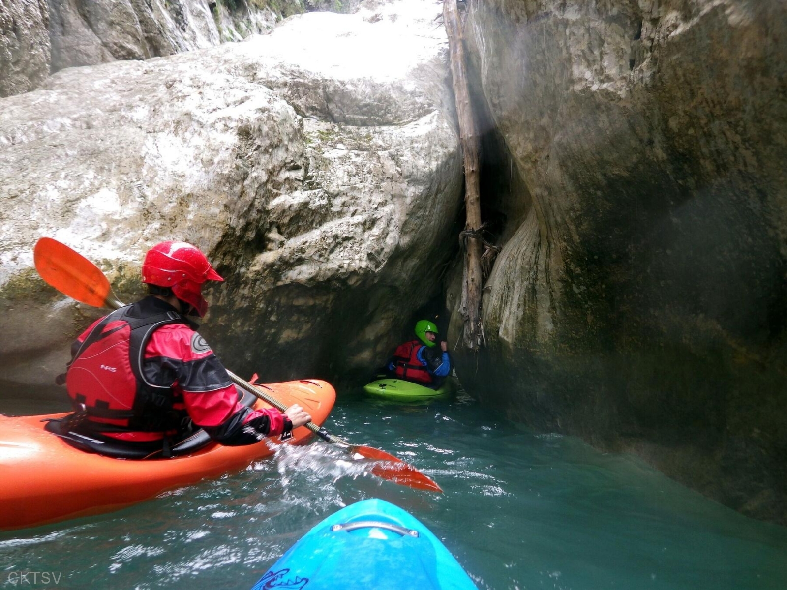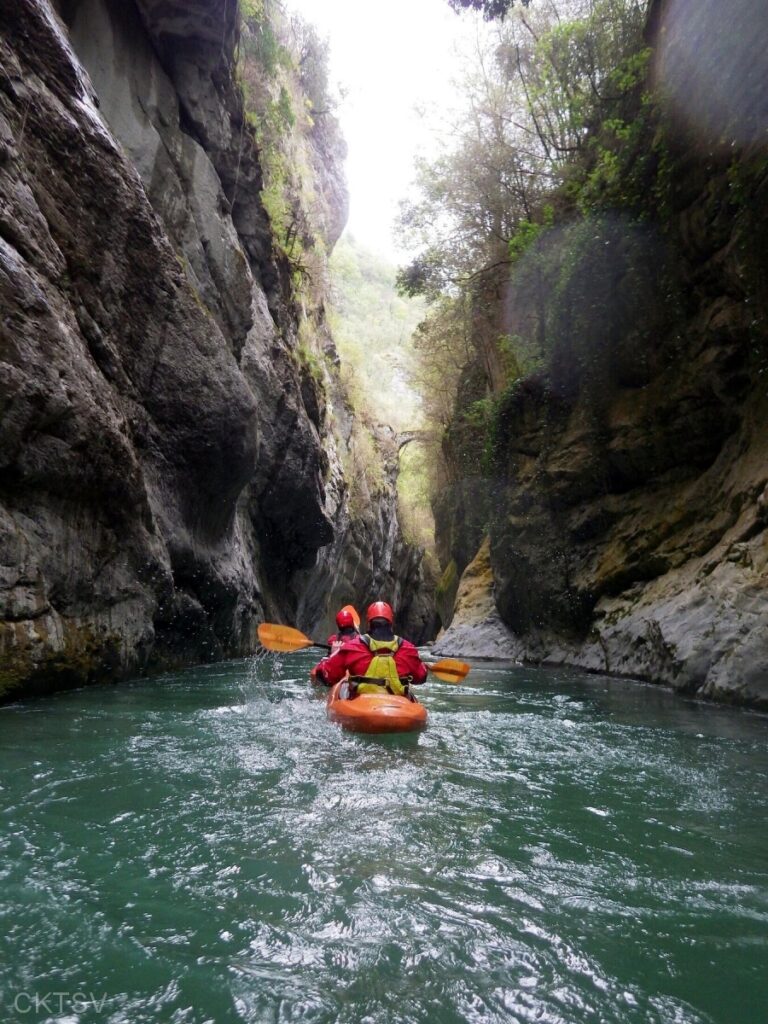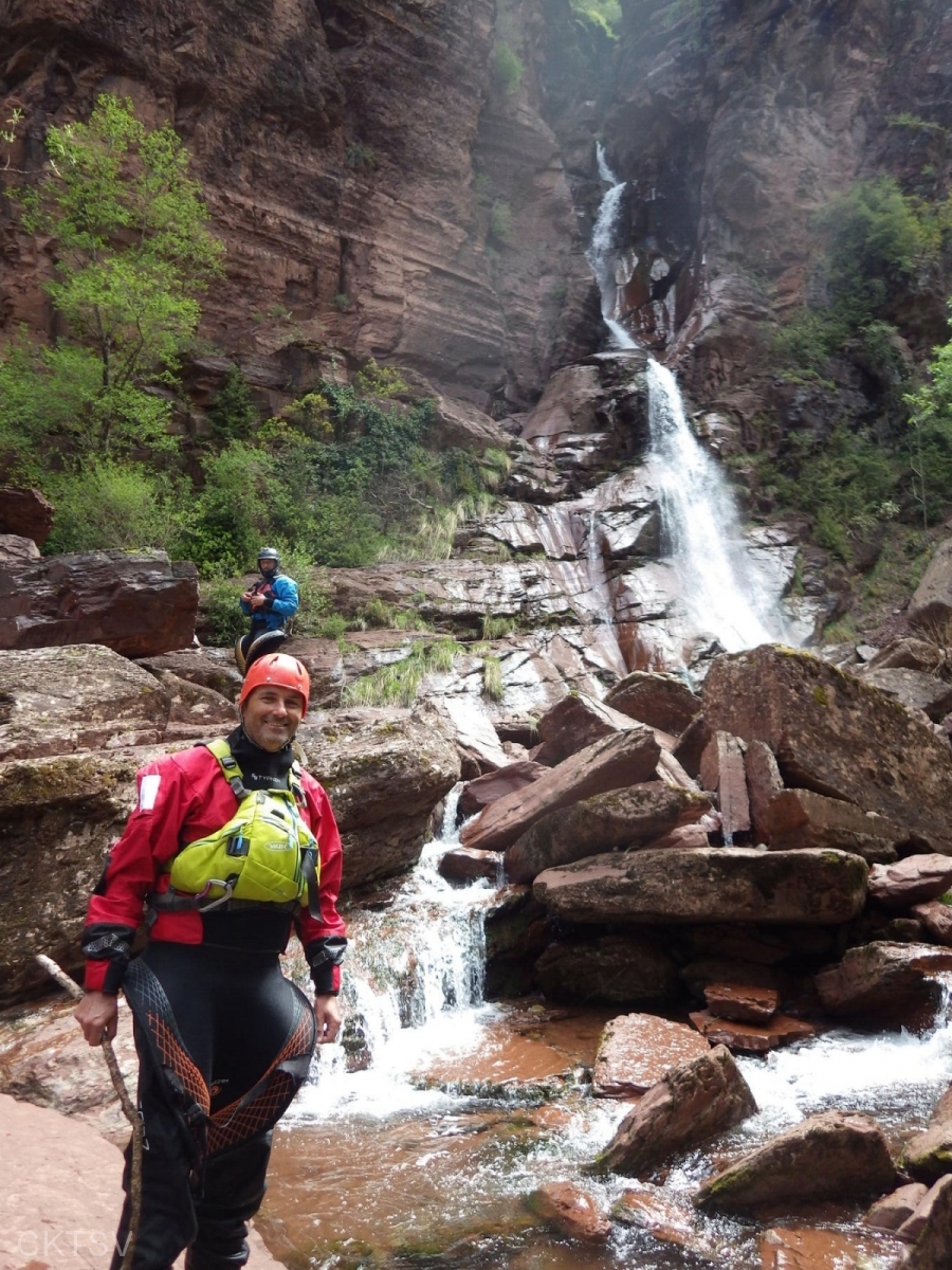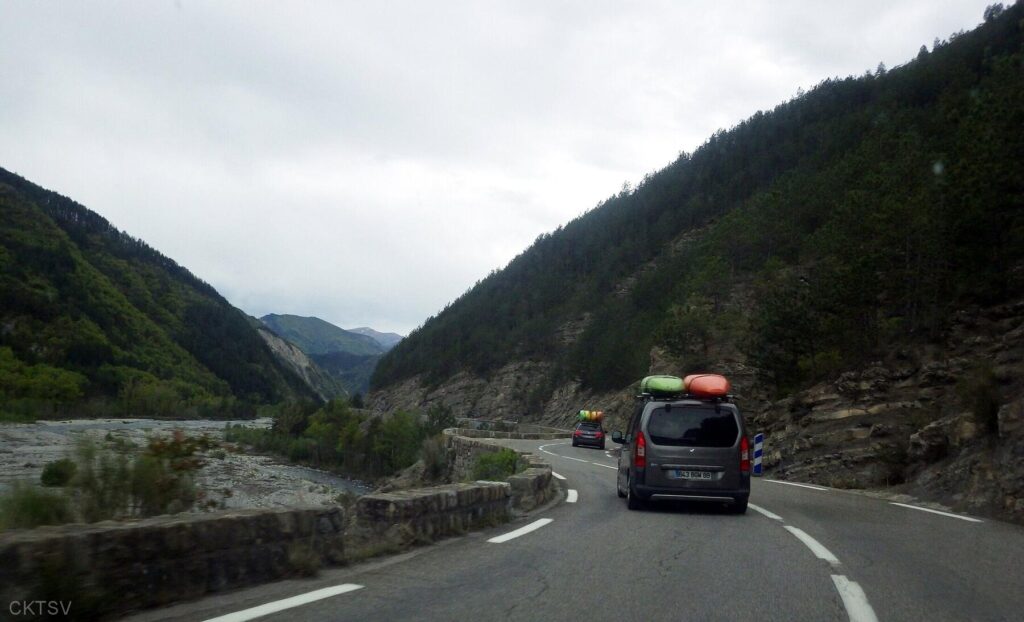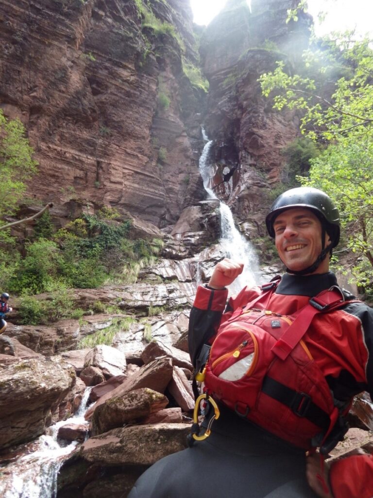 r’ESTERONs nous en amont stoppé par des panneaux propriété privé? Les voisins vigilant? Les menaces d’appel des gendarmes ou crevaisons de pneus? Bien sûr que non, après un portage de 1km en descente cette fois (easy pour nous contrairement à un anciens rugbyman cassé de partout qui sans ça serait venu avec nous, quel dommage!), nous irons dans cette profonde gorge (si tu as lu gorge profonde tu lis mal), certains plus que d’autres d’ailleurs.