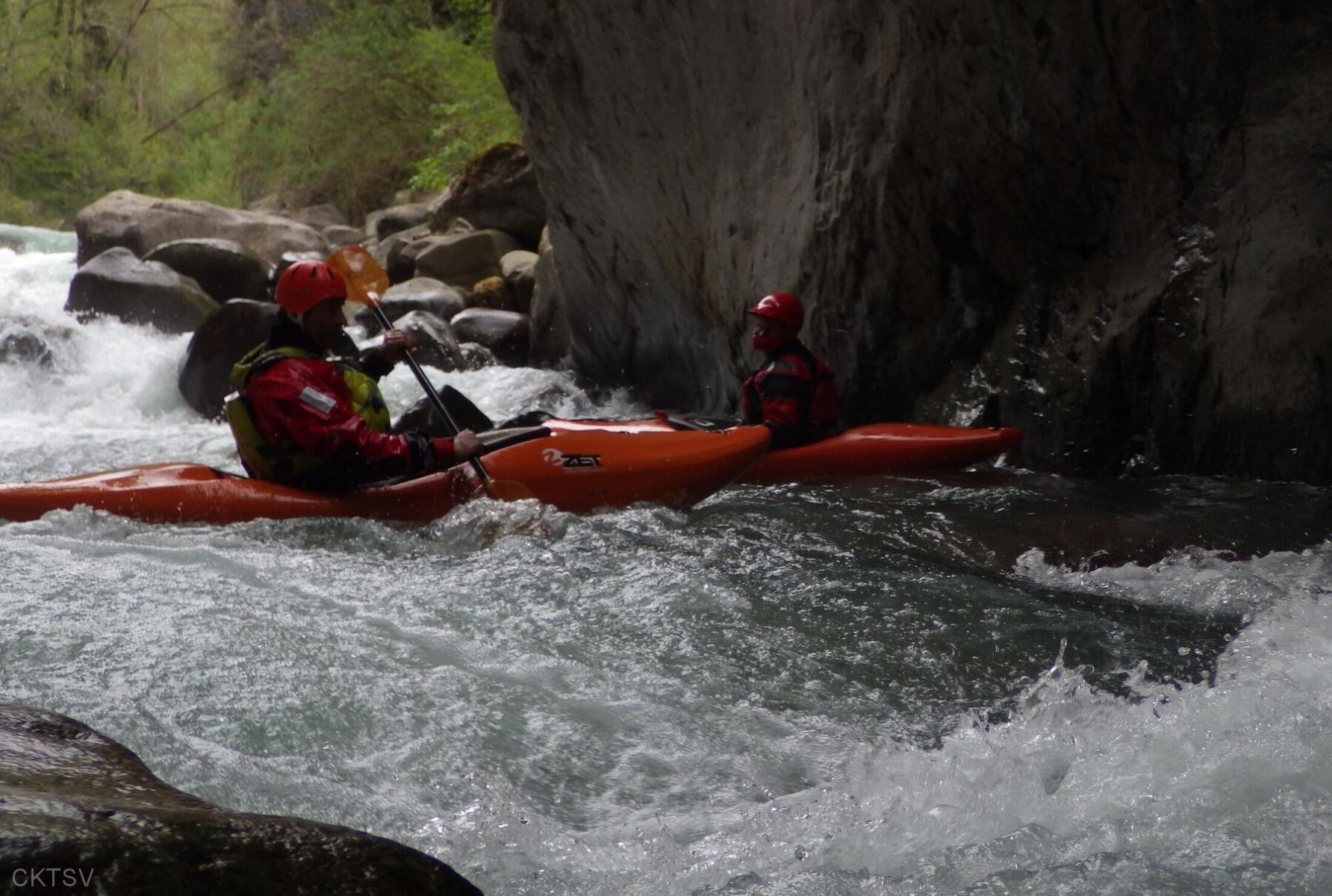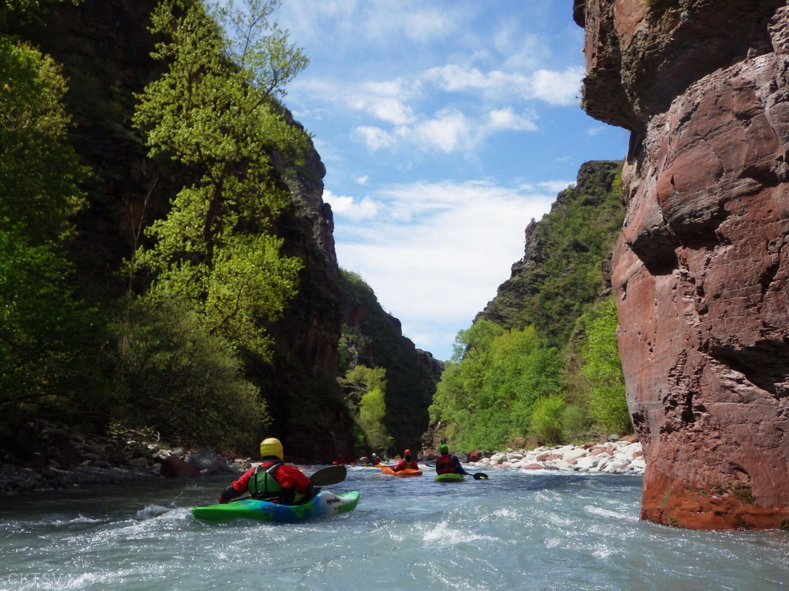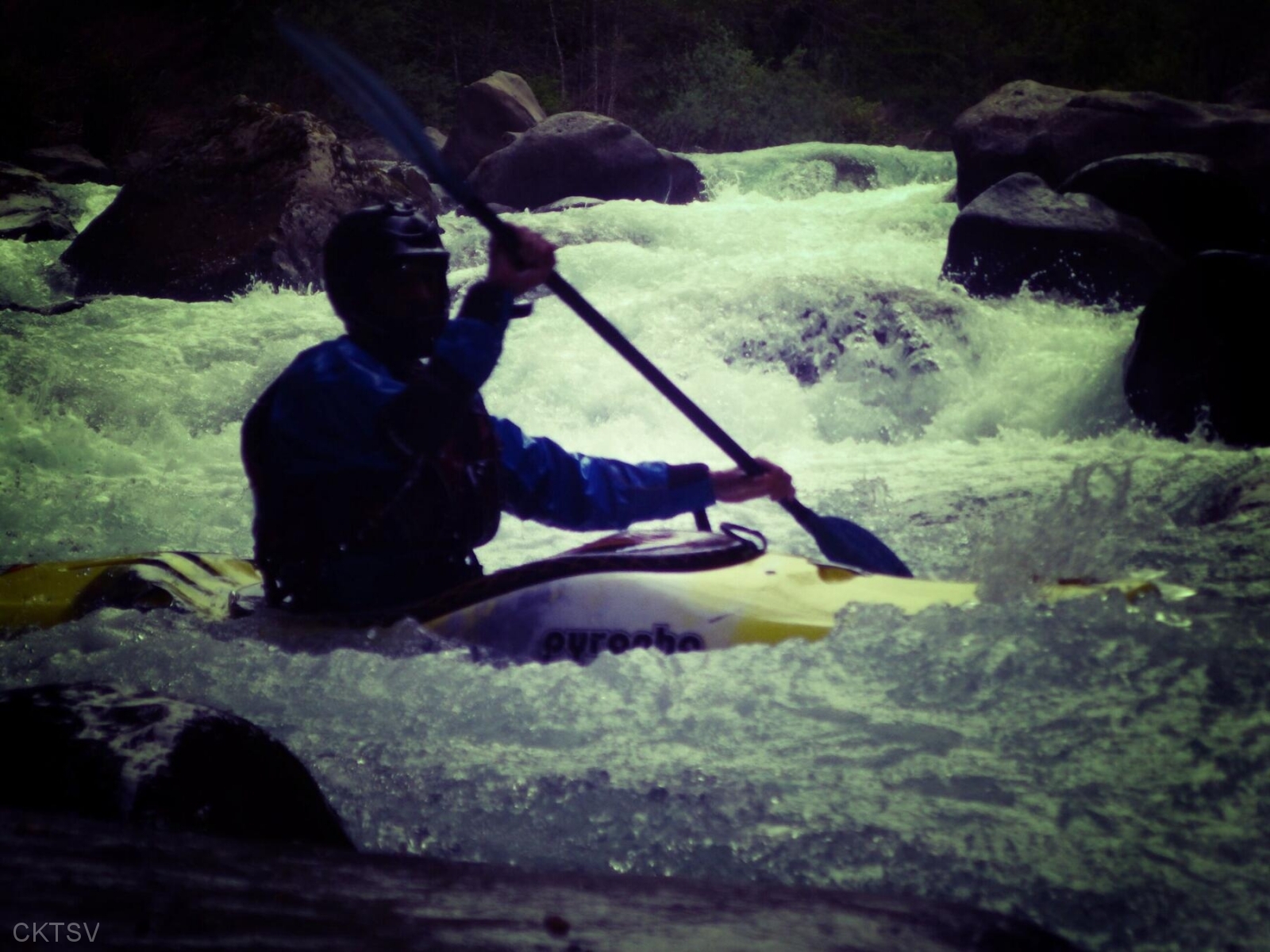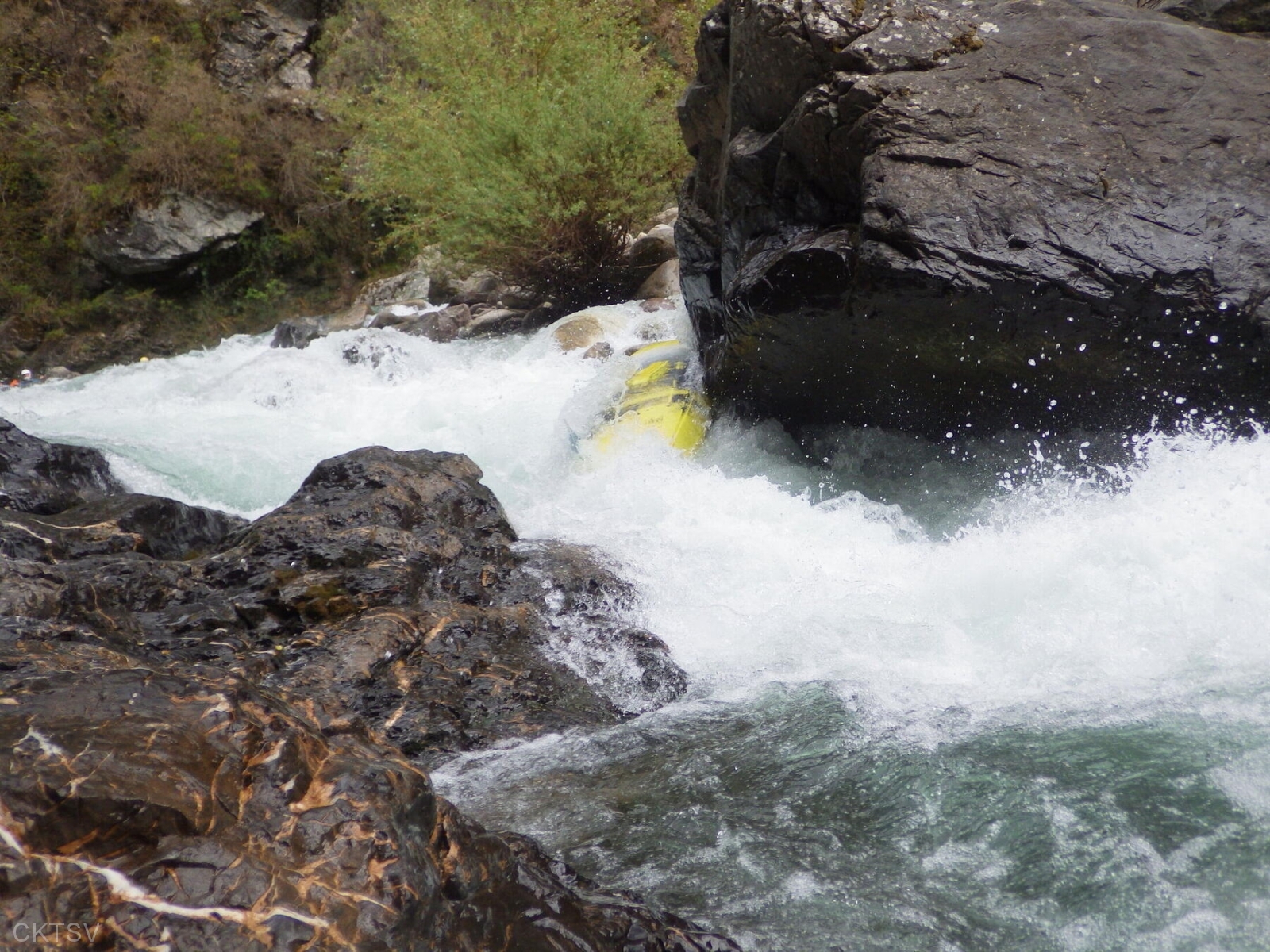 La parcours se déroule sans heurts, jusqu’au moment ou un rocher, un peu fourbe, caché dans un virage, permettra à un kayakiste distrait vraisemblablement par le paysage, de goûter intégralement à la température de l’eau.