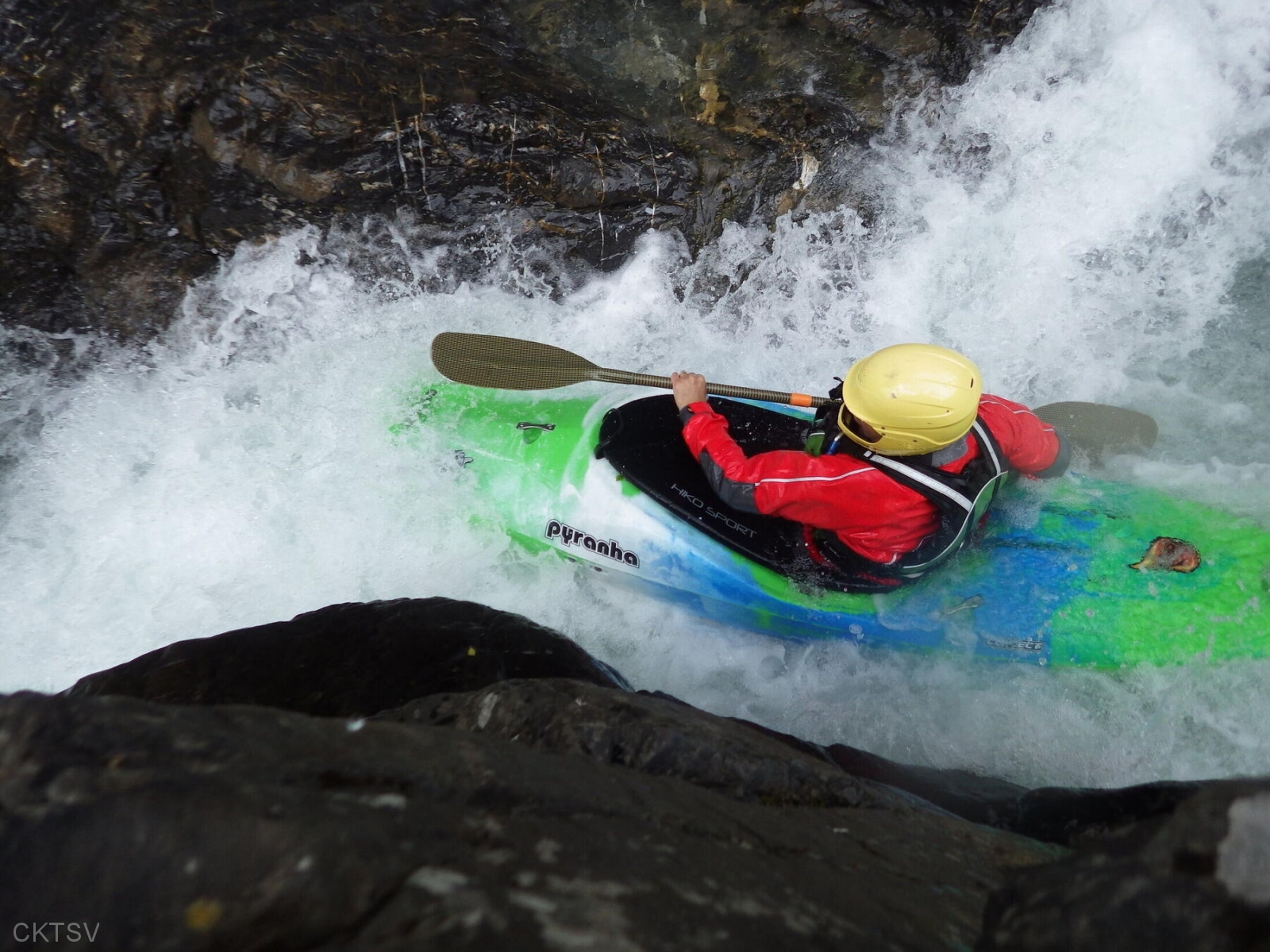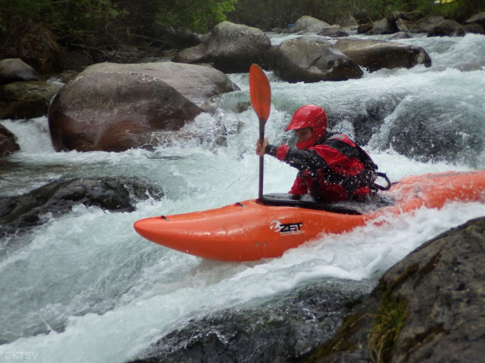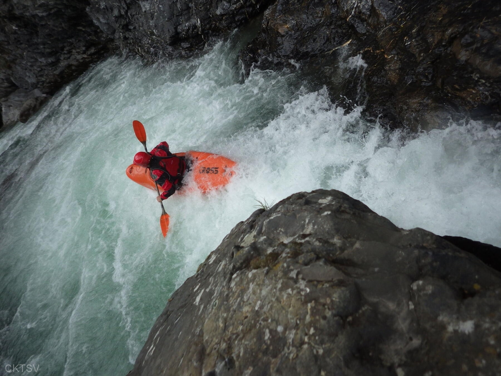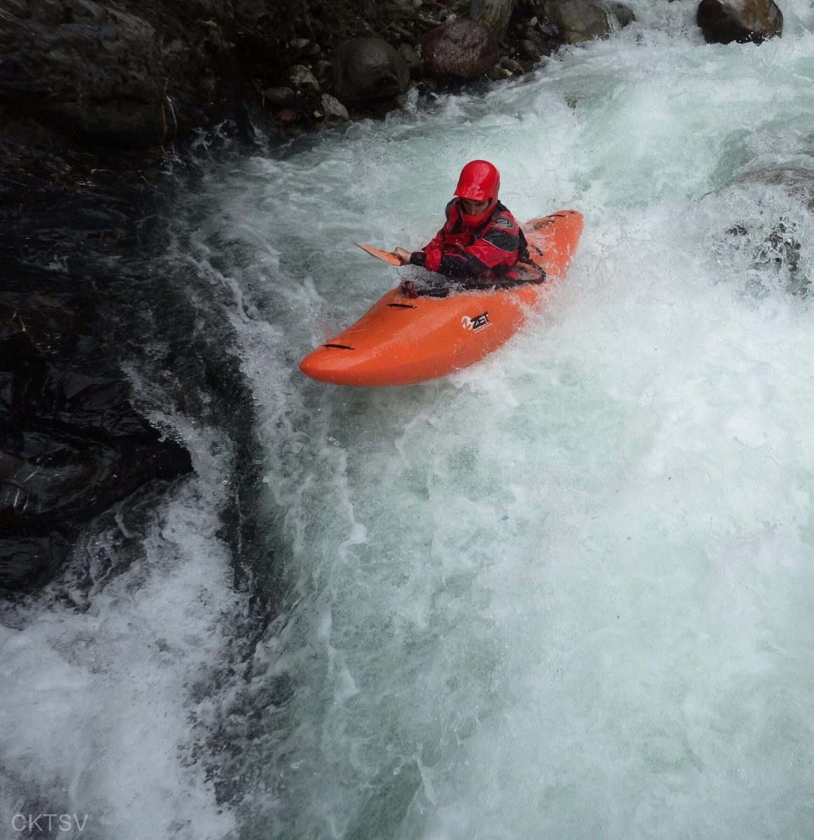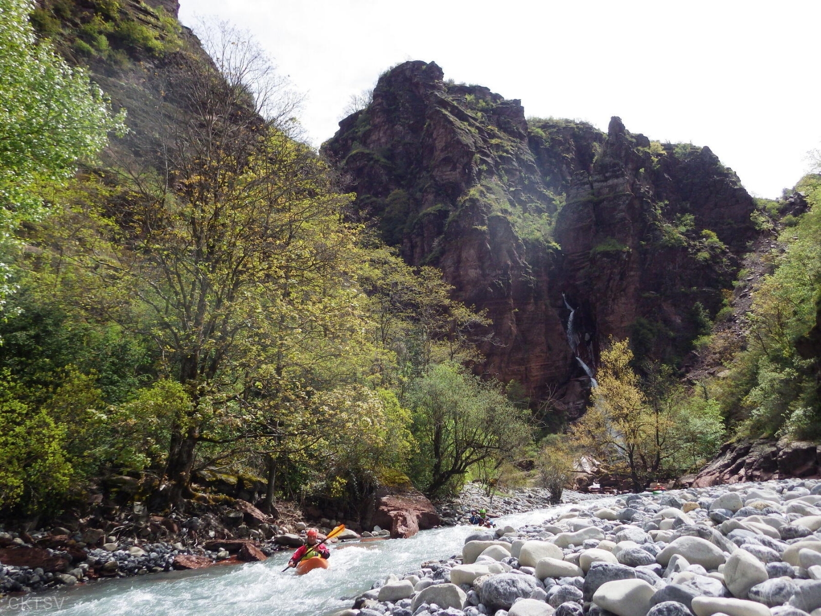 La parcours se déroule sans heurts, jusqu’au moment ou un rocher, un peu fourbe, caché dans un virage, permettra à un kayakiste distrait vraisemblablement par le paysage, de goûter intégralement à la température de l’eau.