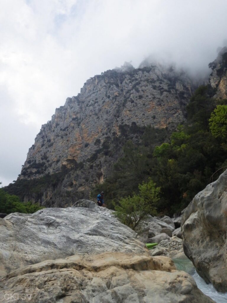 Une eau turquoise, des falaises aux belles formes à défaut de kayakisTE, seuils après seuils on avance doucement, Nico tente d’immortaliser quelques images, Éric prend même le temps de se baigner, on repère, on y va et ça passe parfaitement sur l’eau ou a pied (sur l’eau c’est du bonheur, à pied peut être aussi sous un autre angle).