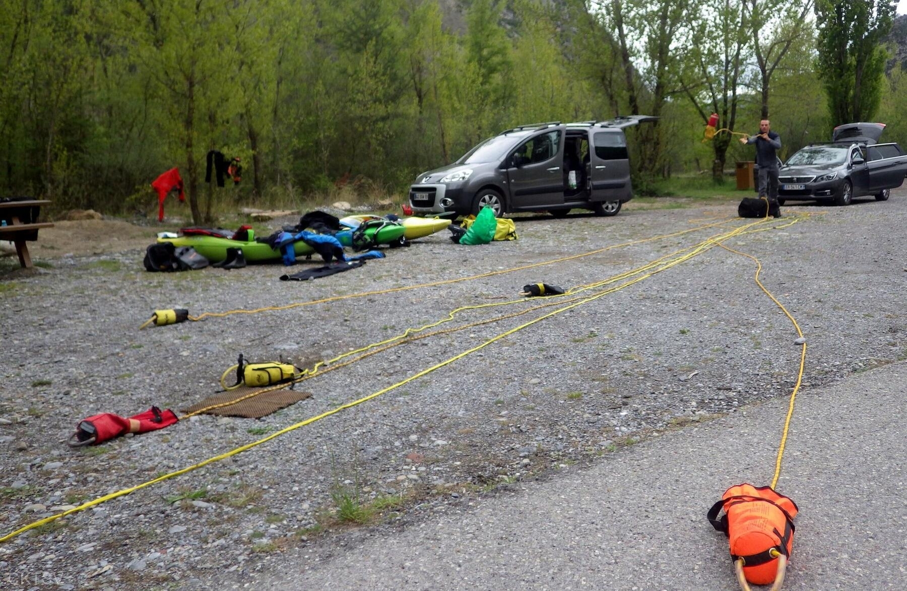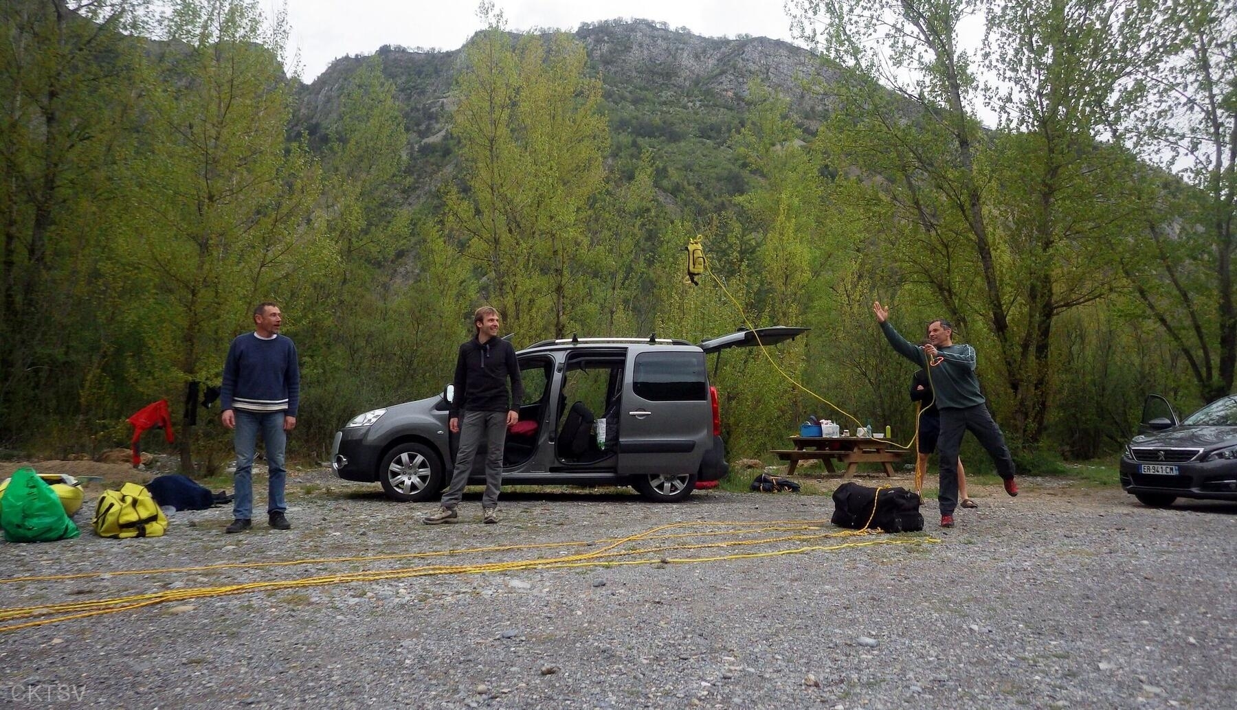 Après le débarquement situé un peu après le pont du ravin de Chaudan et la navette, un concours de lancer de cordes de sécurité sera improvisé par les encadrants afin de désigner les heureux rédacteurs du CR.