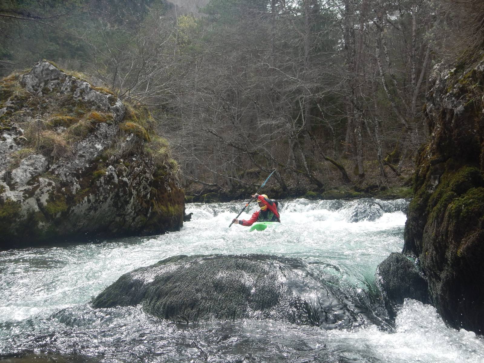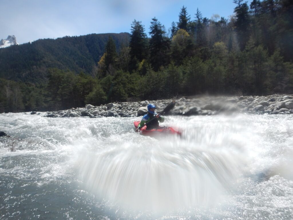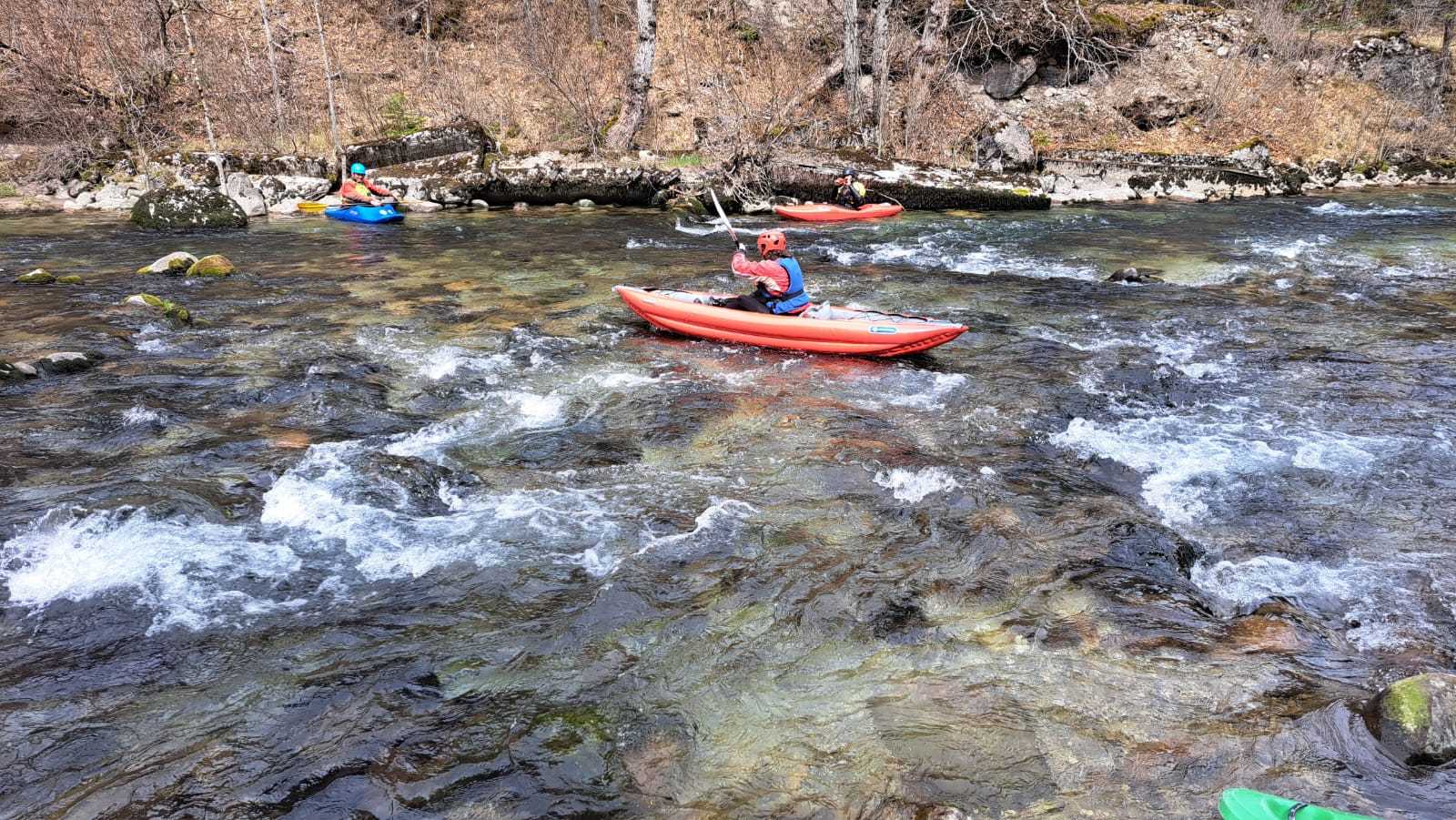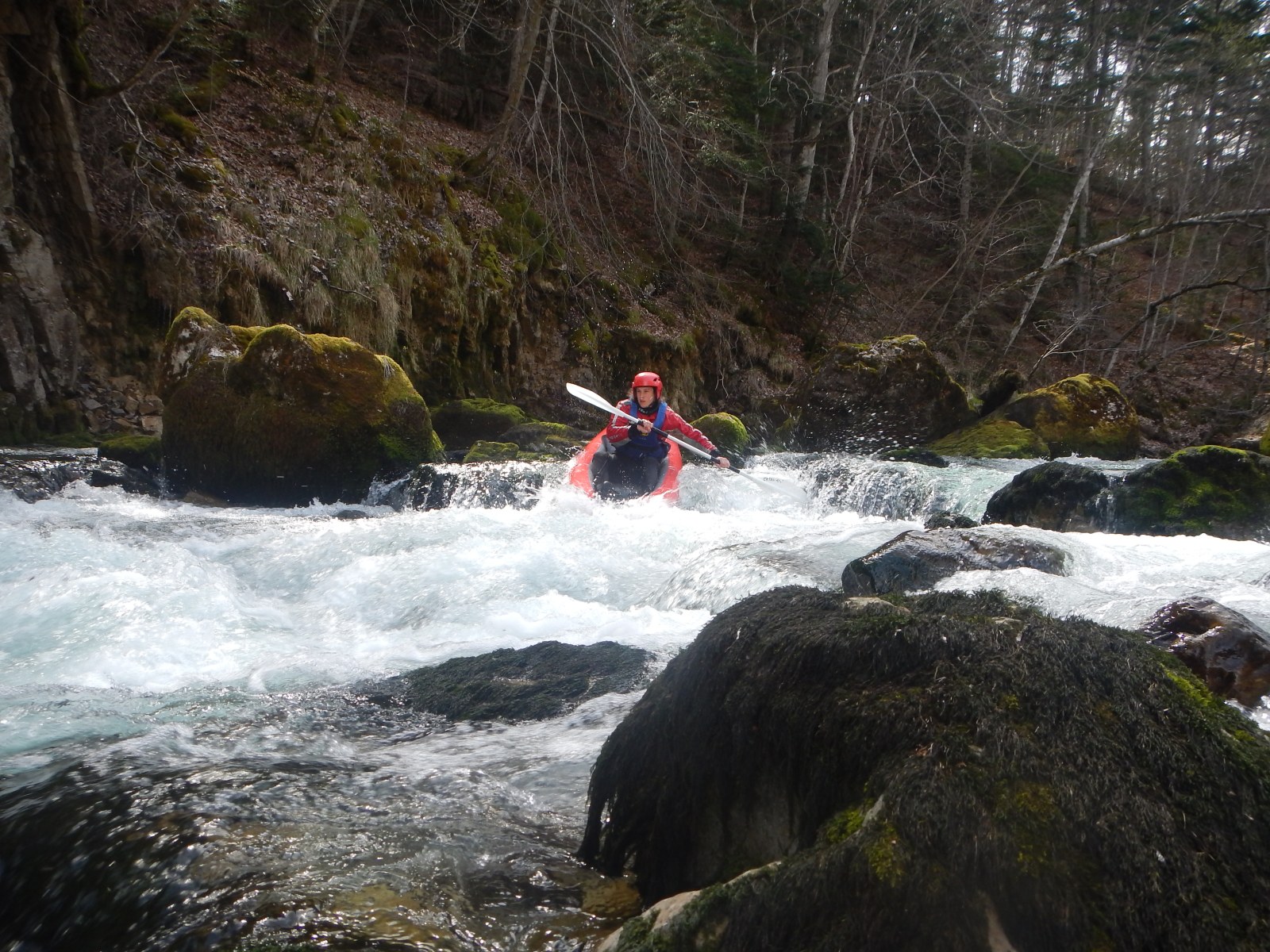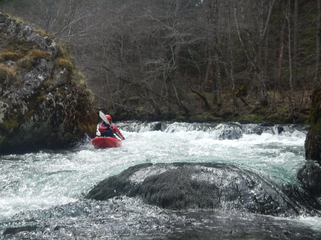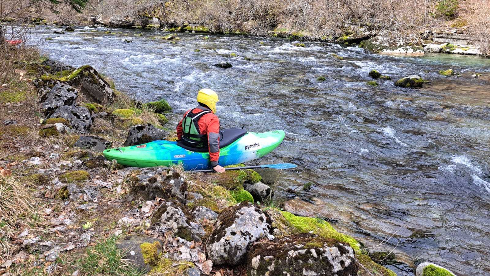 – C’est simple, ici les rochers au milieu de la rivière crééent des mouvements d’eau qui nous permettent de travailler nos « gammes » tout en restant au même endroit. Pour le transport c’est plus simple. On aurait préféré faire une rivière naturelle mais les niveaux sont encore trop juste, il fait encore trop froid . Et puis on a dormi pas loin, et surtout il y a des cafés en ville.