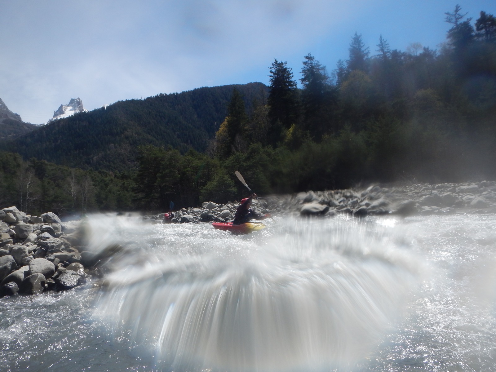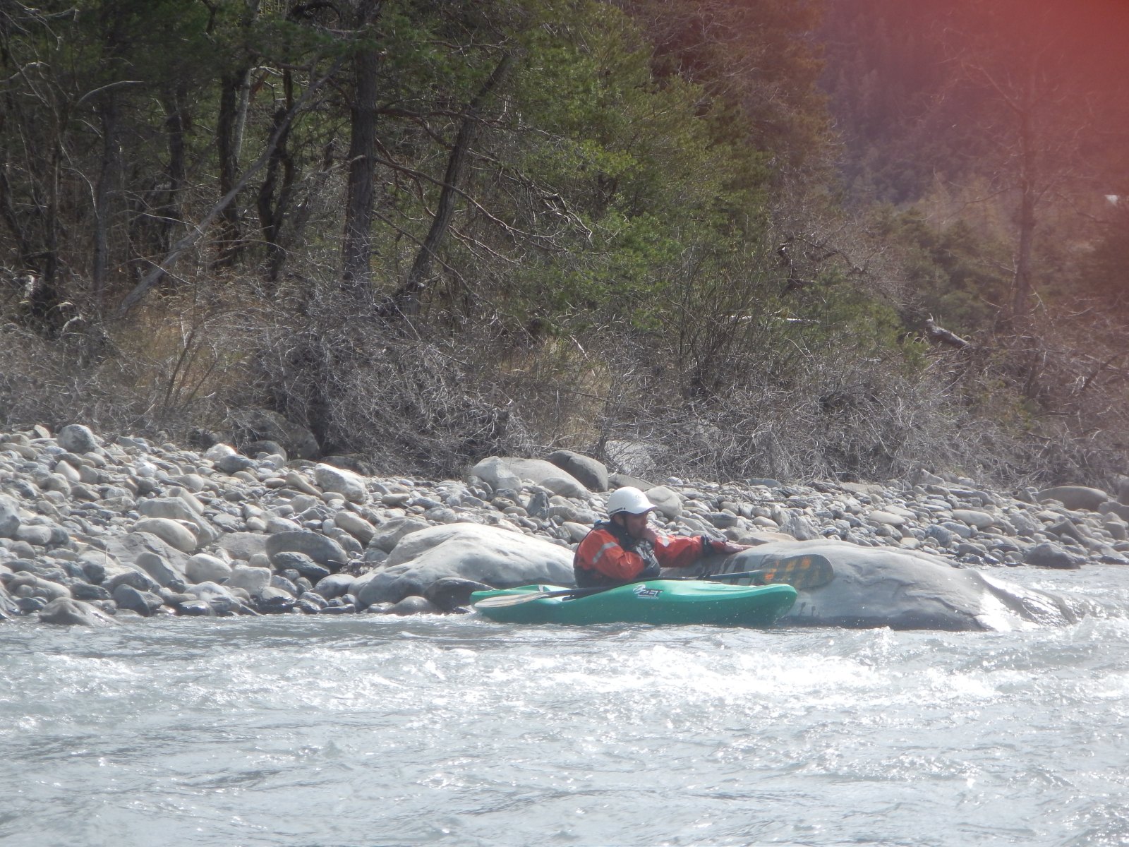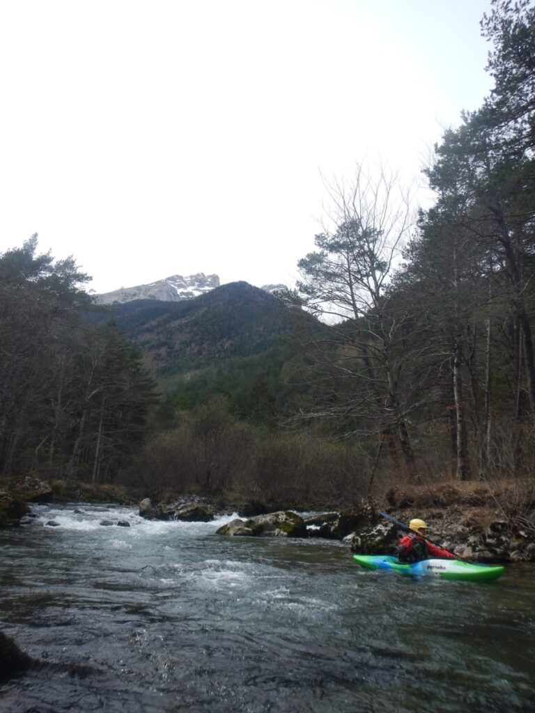 – Mais la rivière est longue, j’ai remonté toute la vallée, pourquoi pagayer, (c’est bien comme ca que vous dite?) ici précisément ?