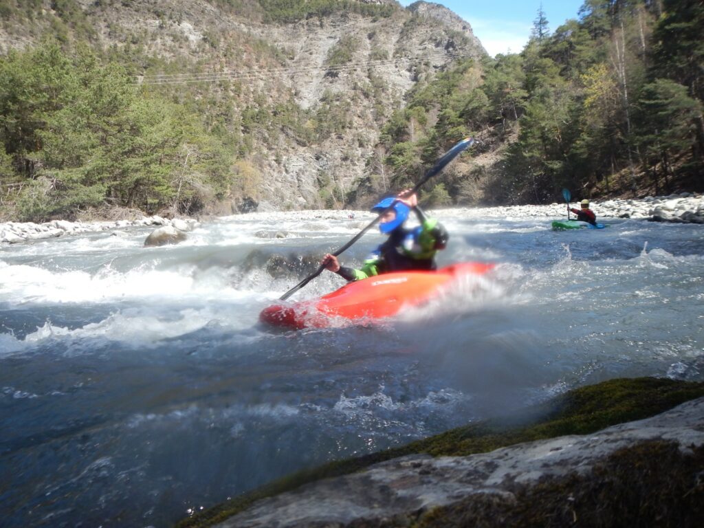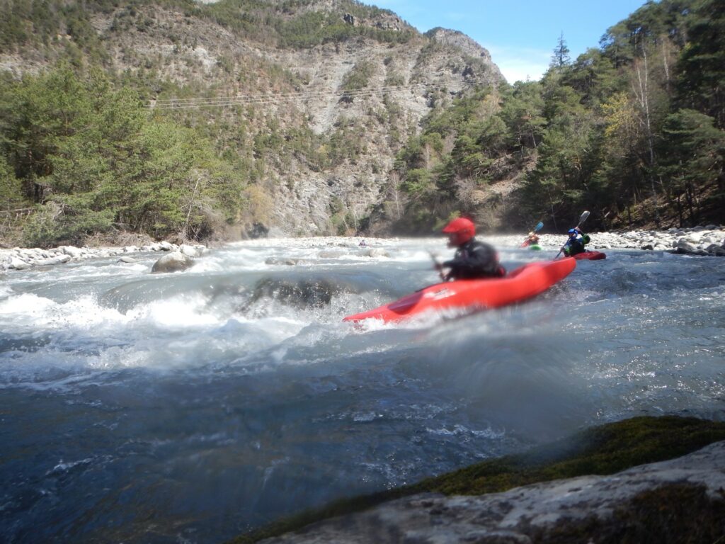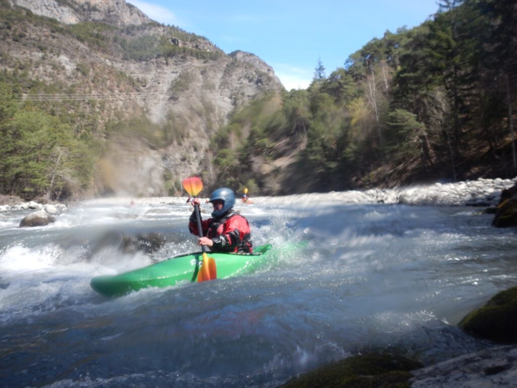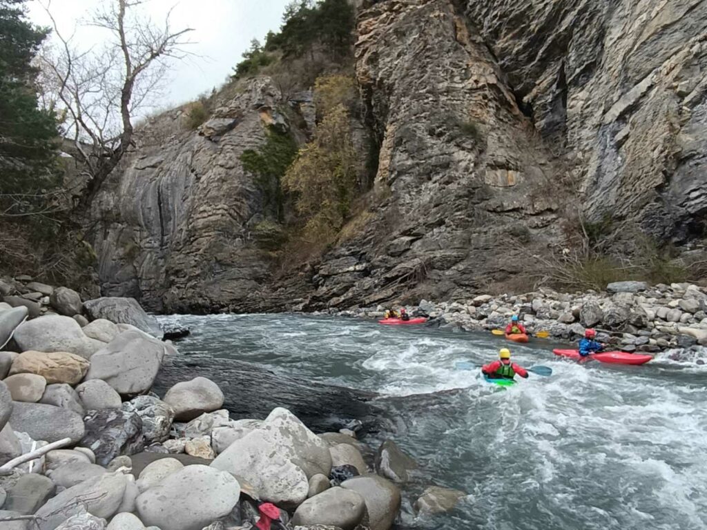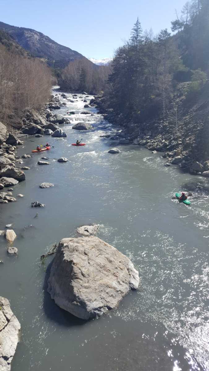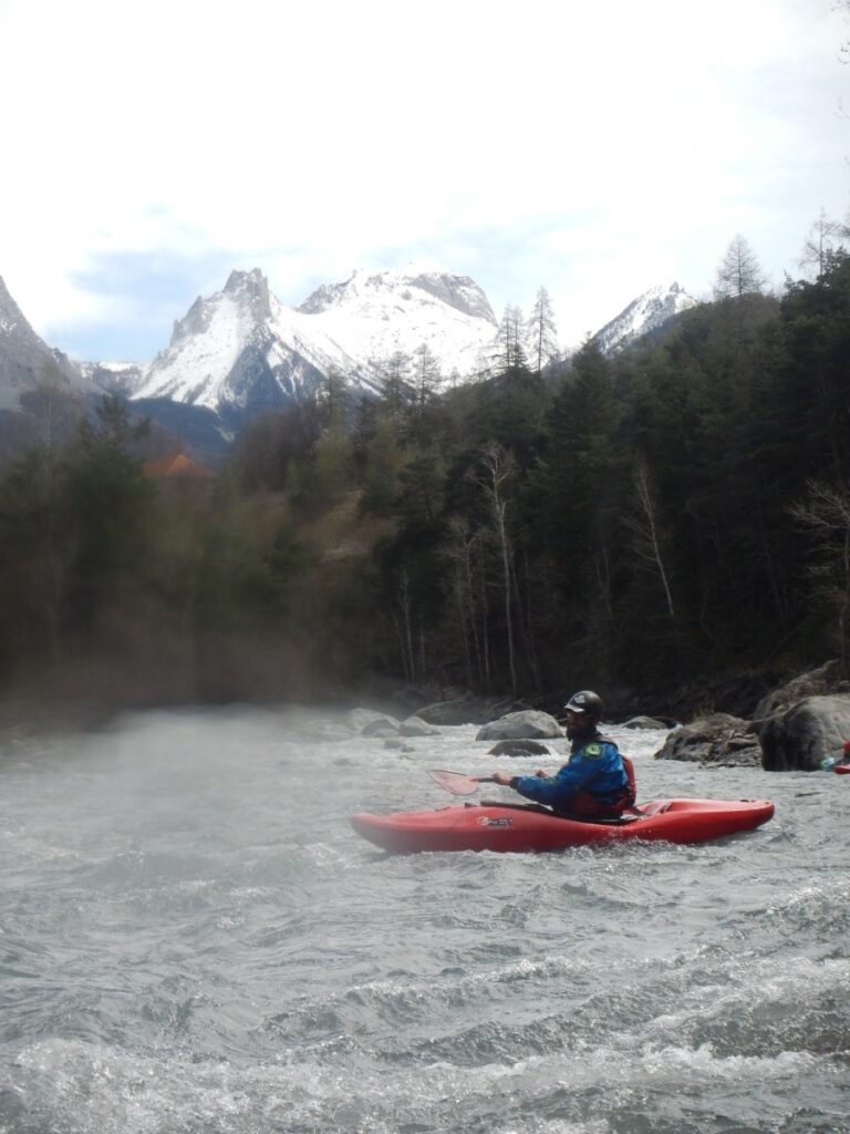 Ils s’appellent, Loïc, Jérome, Christelle, Laurie, Stéphane, Pierre-Yves, Bertrand, Raphael, et sont épuisés par leur discipline , le kayak, la météo fraîche. Alors quand une fois de plus se pose la question du choix de la rivière du lendemain, ils en viennent à faire des votes à bulletin secret. La Bonne, l’Ubaye. C’est l’Ubaye qui l’emporte . Non ces kayakistes ne se lassent pas de recommencer la même rivière que la veille, même si le froid de l’eau et de l ‘air piquent les mains. Il y a tout de même quelques désistements ce qui facilite les navettes. On ne parle même pas de refaire les ex du bas ou du haut dans ces conditions où trop peu sont ceux intéressé. Les performances sont tout de même à noter sur le temps de nettoyage du camp de base et de remballage d’affaires, une demi-heure d’avance sur le planning, la discipline réserve de bonne surprise. Et l’après navig, c’est le repas toujours bienvenu et le retour sur Grenoble puis Lyon où chacun et content de son séjour et en ressort avec la certitude d’avoir encore appris sur la discipline quelque soit l’expérience qu’il a dans le sport.