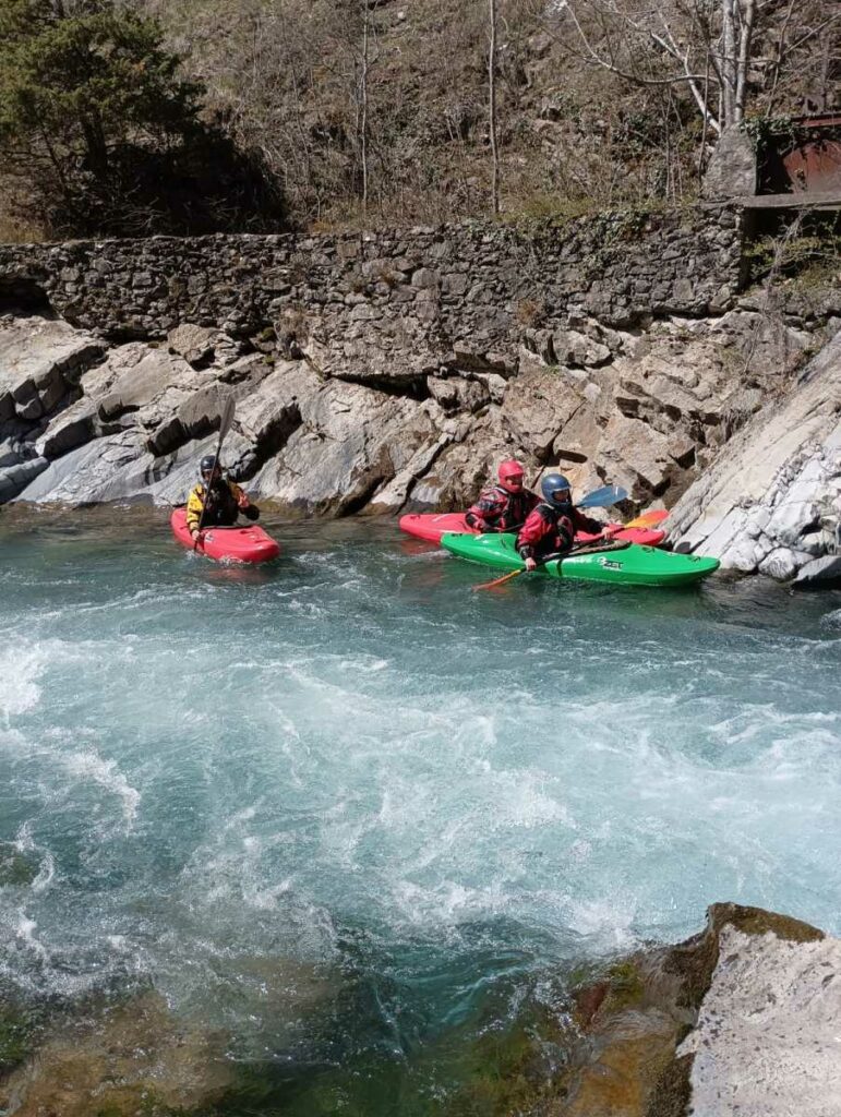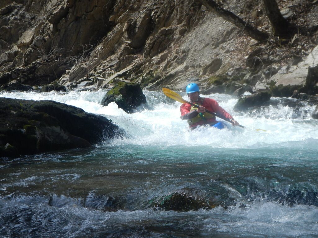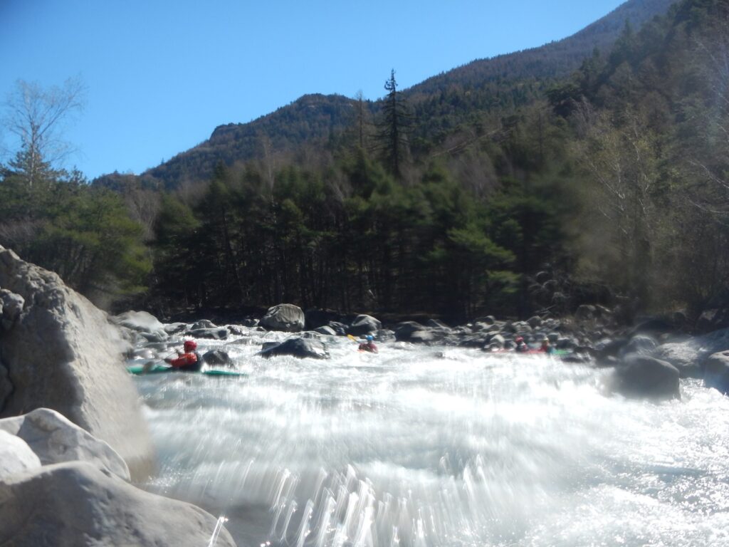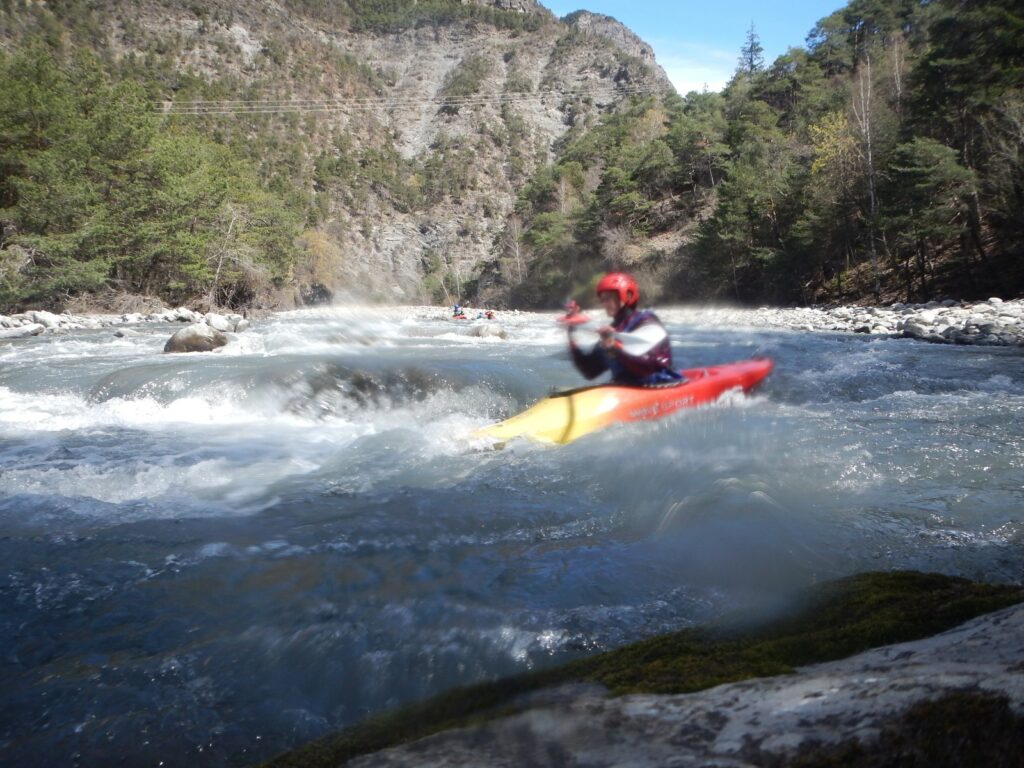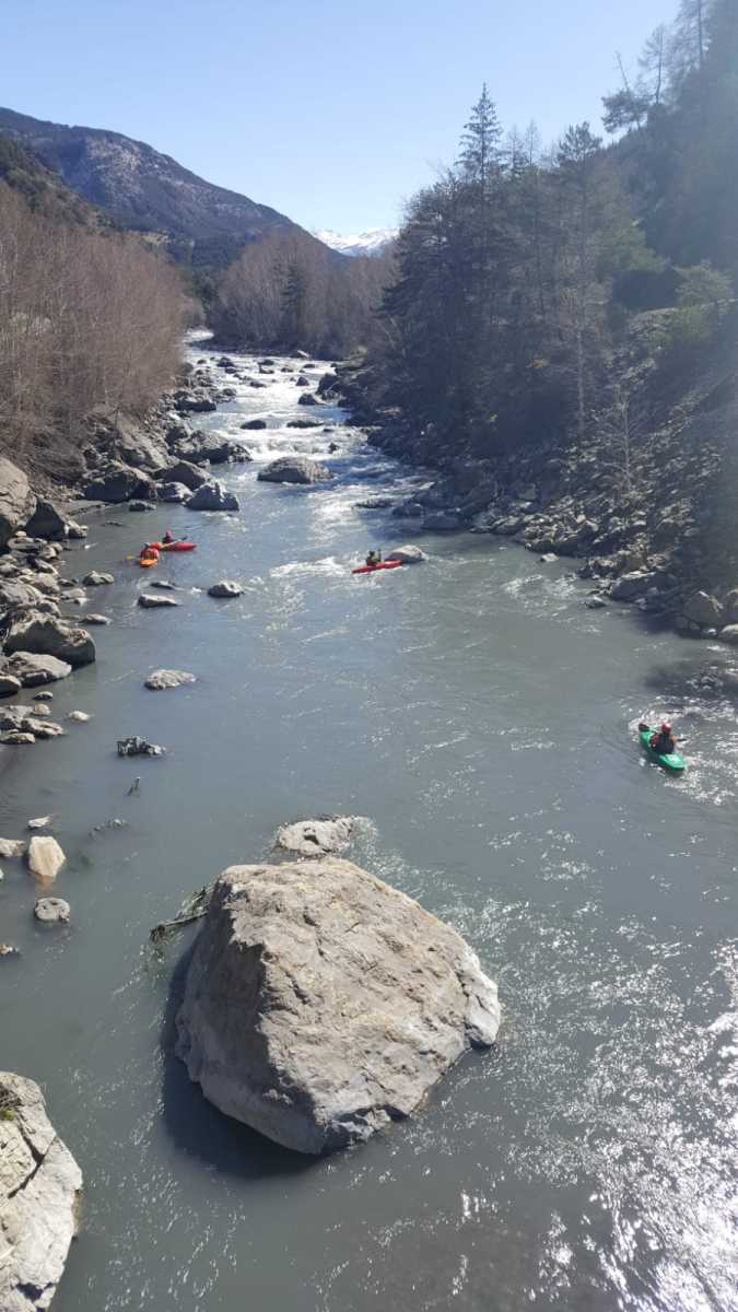 Ils s’appellent, Loïc, Jérome, Christelle, Laurie, Stéphane, Pierre-Yves, Bertrand, Raphael, et sont épuisés par leur discipline , le kayak, la météo fraîche. Alors quand une fois de plus se pose la question du choix de la rivière du lendemain, ils en viennent à faire des votes à bulletin secret. La Bonne, l’Ubaye. C’est l’Ubaye qui l’emporte . Non ces kayakistes ne se lassent pas de recommencer la même rivière que la veille, même si le froid de l’eau et de l ‘air piquent les mains. Il y a tout de même quelques désistements ce qui facilite les navettes. On ne parle même pas de refaire les ex du bas ou du haut dans ces conditions où trop peu sont ceux intéressé. Les performances sont tout de même à noter sur le temps de nettoyage du camp de base et de remballage d’affaires, une demi-heure d’avance sur le planning, la discipline réserve de bonne surprise. Et l’après navig, c’est le repas toujours bienvenu et le retour sur Grenoble puis Lyon où chacun et content de son séjour et en ressort avec la certitude d’avoir encore appris sur la discipline quelque soit l’expérience qu’il a dans le sport.