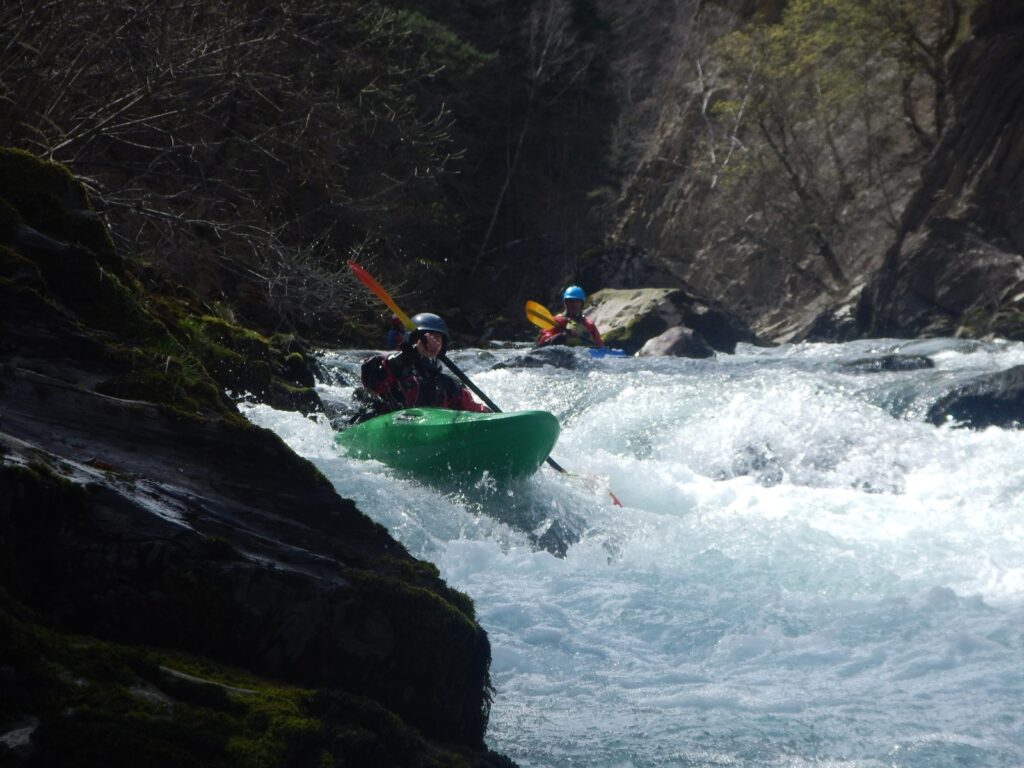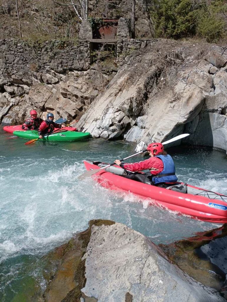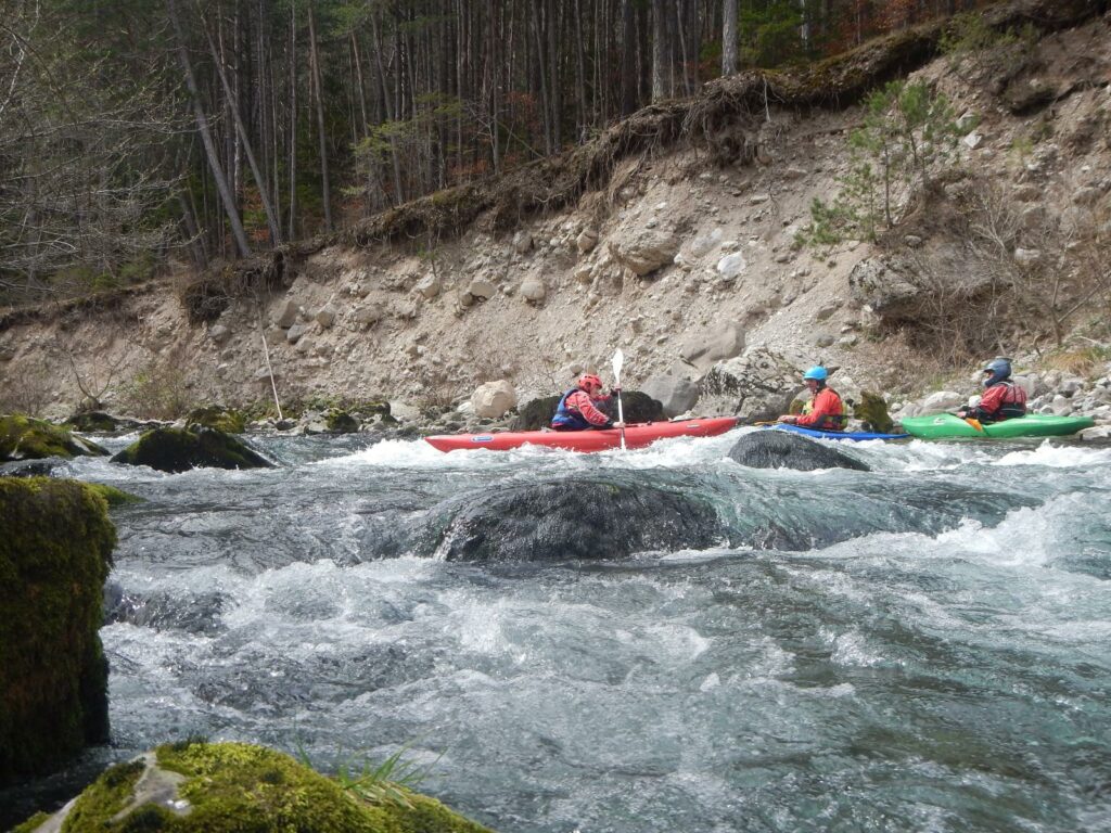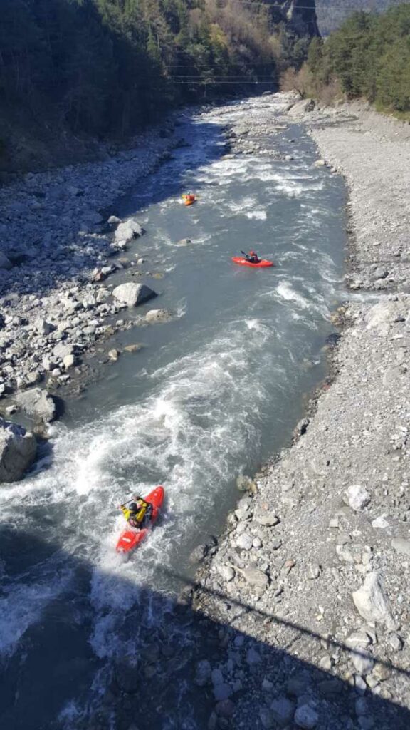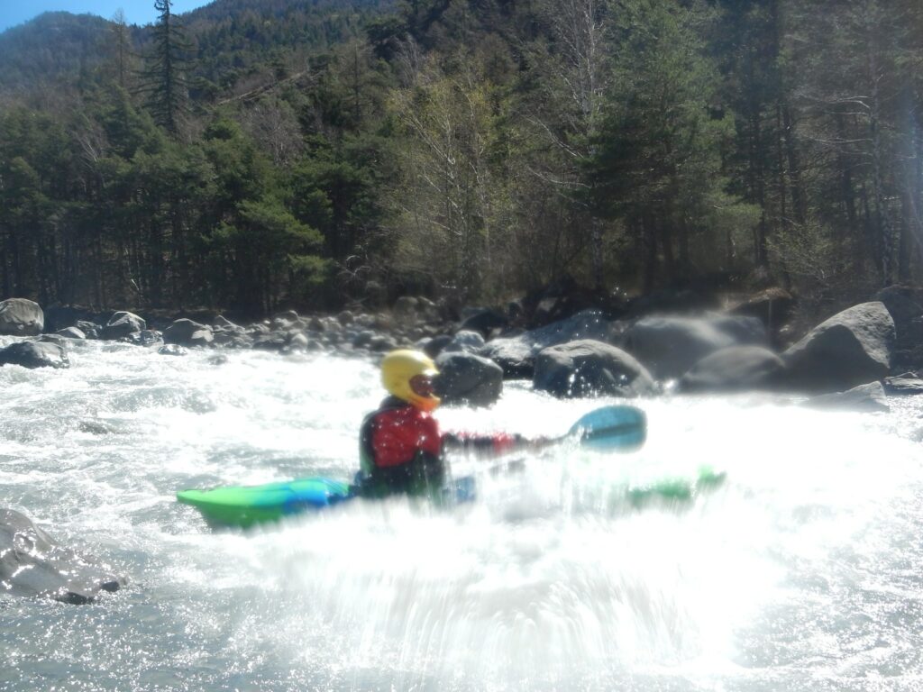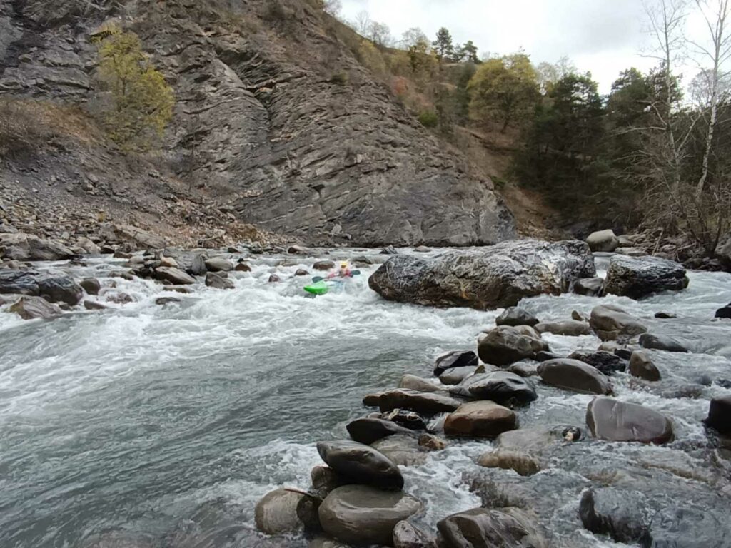 Ils s’appellent, Loïc, Jérome, Christelle, Laurie, Stéphane, Pierre-Yves, Bertrand, Raphael, et sont épuisés par leur discipline , le kayak, la météo fraîche. Alors quand une fois de plus se pose la question du choix de la rivière du lendemain, ils en viennent à faire des votes à bulletin secret. La Bonne, l’Ubaye. C’est l’Ubaye qui l’emporte . Non ces kayakistes ne se lassent pas de recommencer la même rivière que la veille, même si le froid de l’eau et de l ‘air piquent les mains. Il y a tout de même quelques désistements ce qui facilite les navettes. On ne parle même pas de refaire les ex du bas ou du haut dans ces conditions où trop peu sont ceux intéressé. Les performances sont tout de même à noter sur le temps de nettoyage du camp de base et de remballage d’affaires, une demi-heure d’avance sur le planning, la discipline réserve de bonne surprise. Et l’après navig, c’est le repas toujours bienvenu et le retour sur Grenoble puis Lyon où chacun et content de son séjour et en ressort avec la certitude d’avoir encore appris sur la discipline quelque soit l’expérience qu’il a dans le sport.