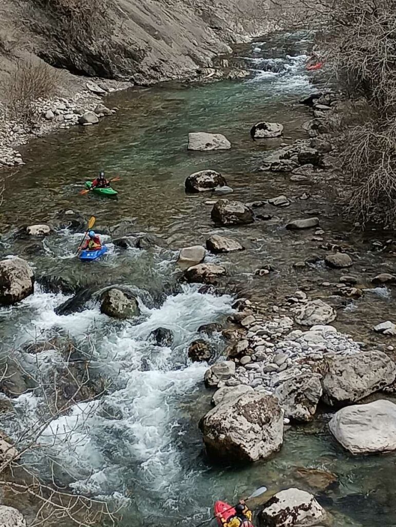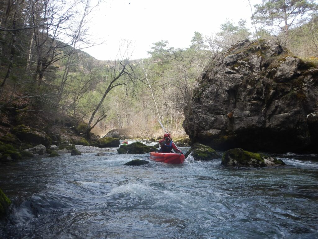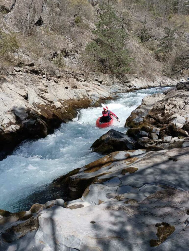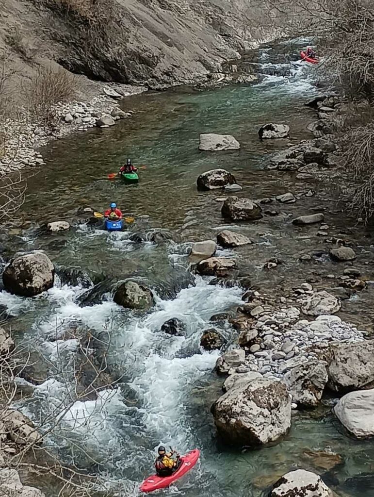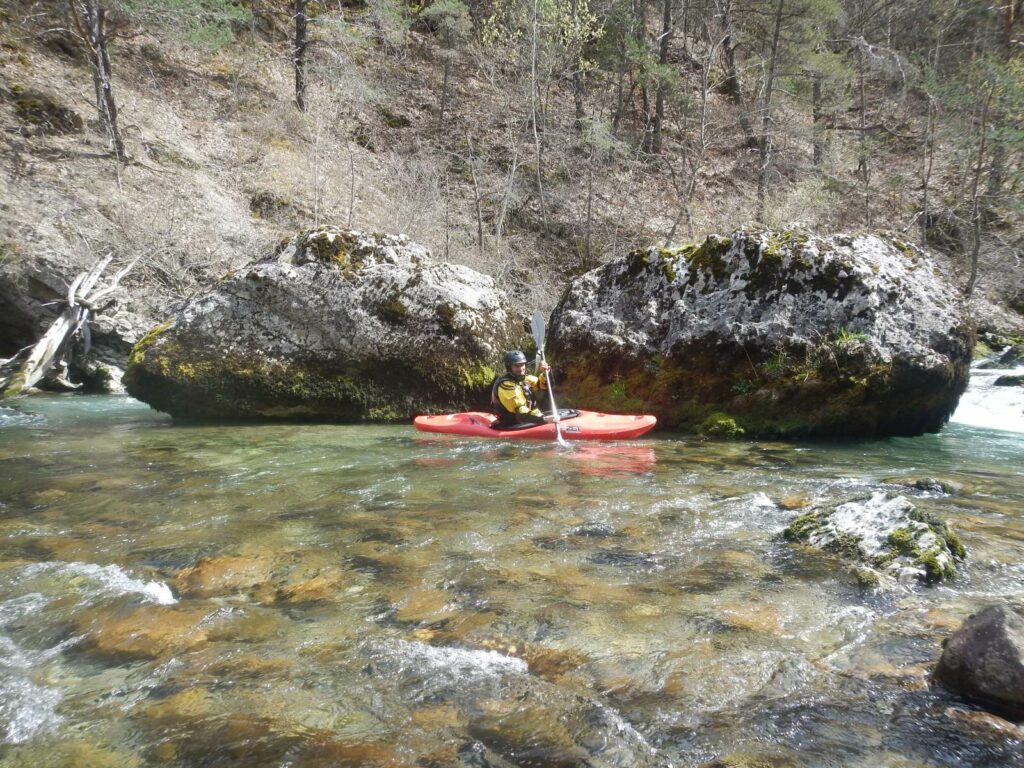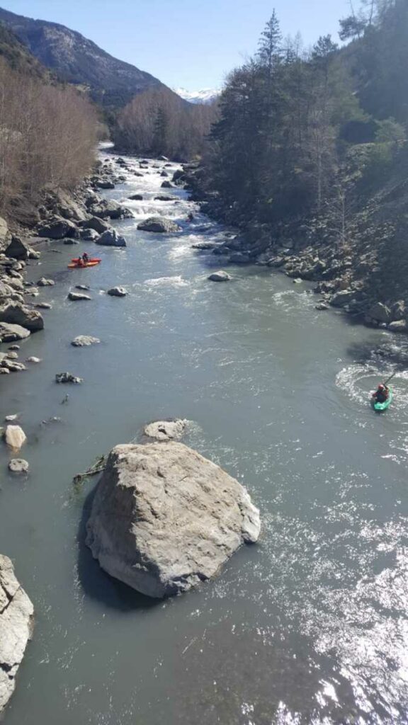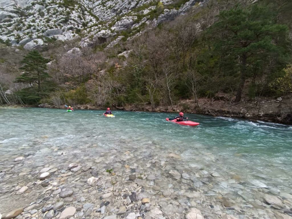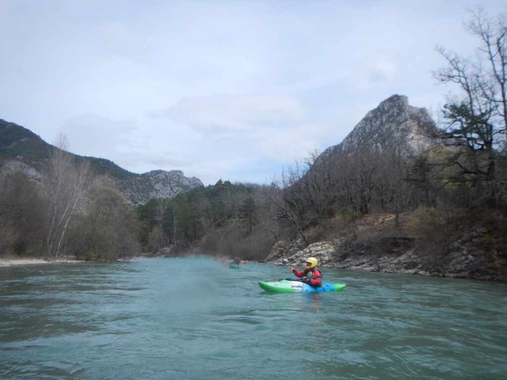 – Tout à fait, on peut embarquer à Castellane, avec un parcours moins engagé, proche de la route, mais il faut un bon niveau d’eau, c’est l’option que nous avons choisie (enfin nous avons embarqué quelques km en dessous de Castellane).
