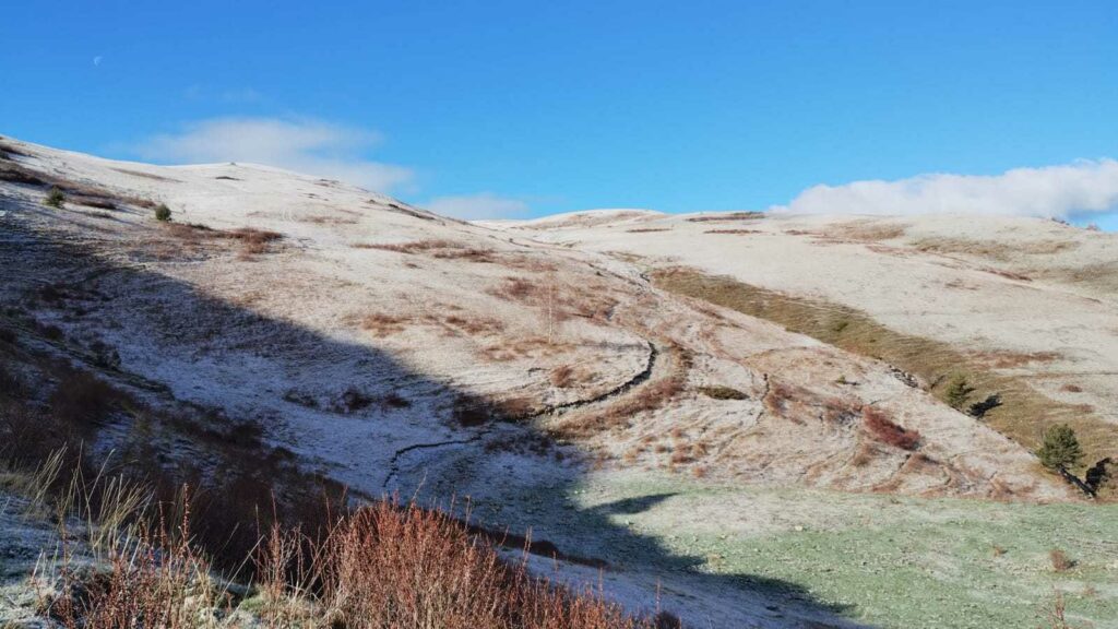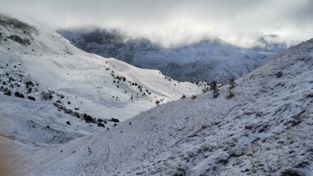 Température: -3°C le matin, neige à 1600m . Donc course à pieds et rando