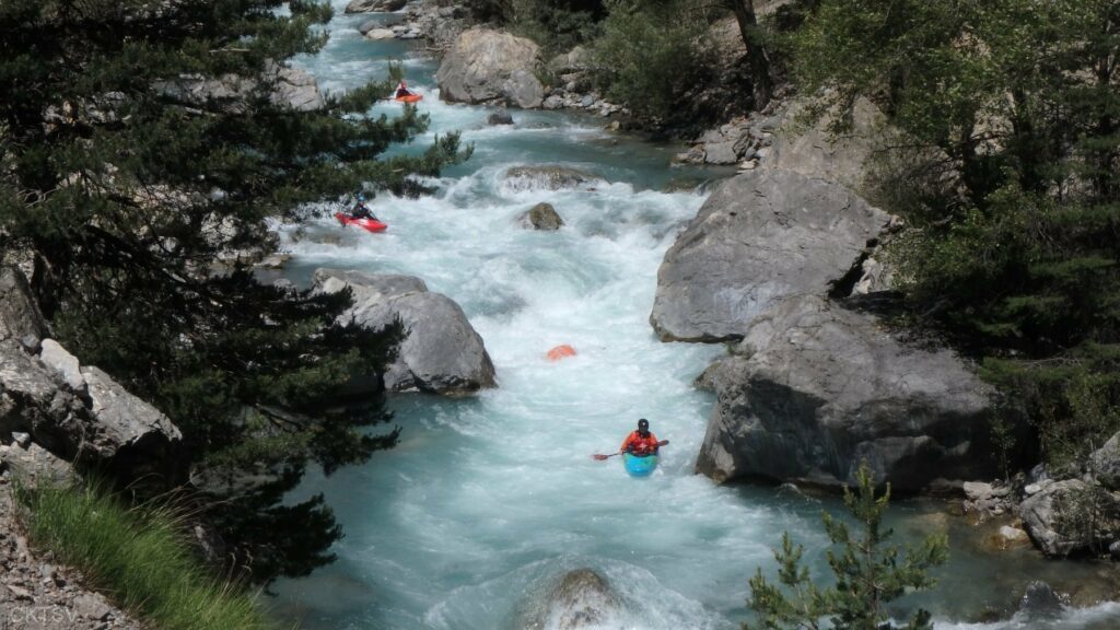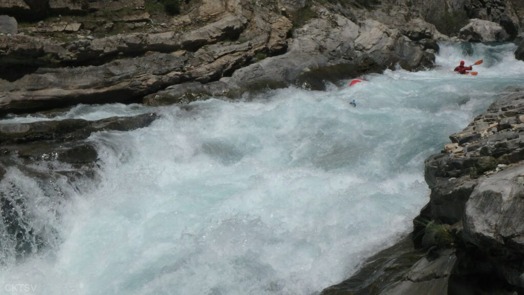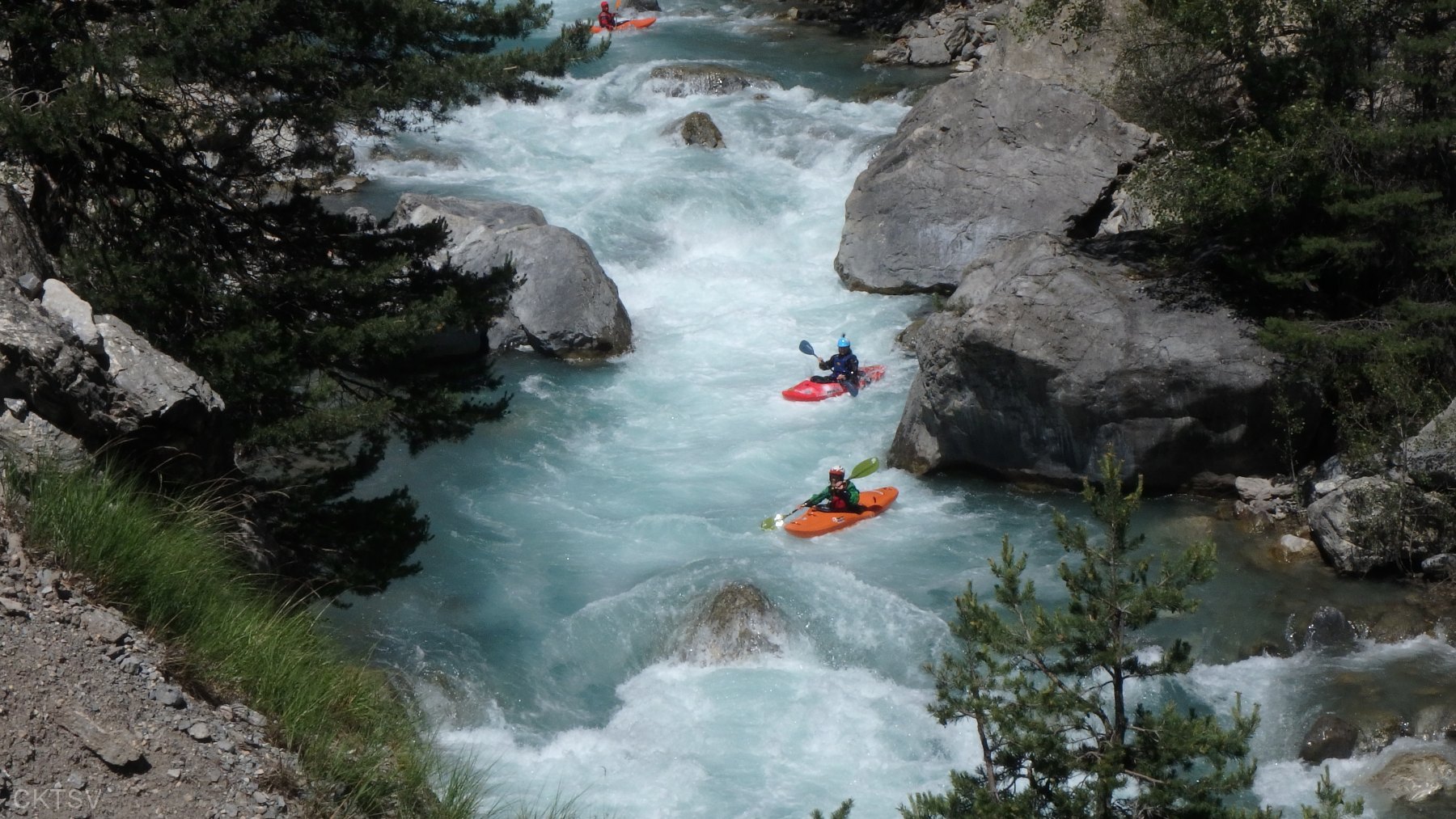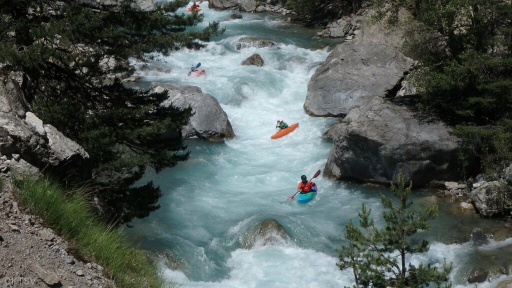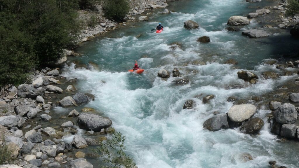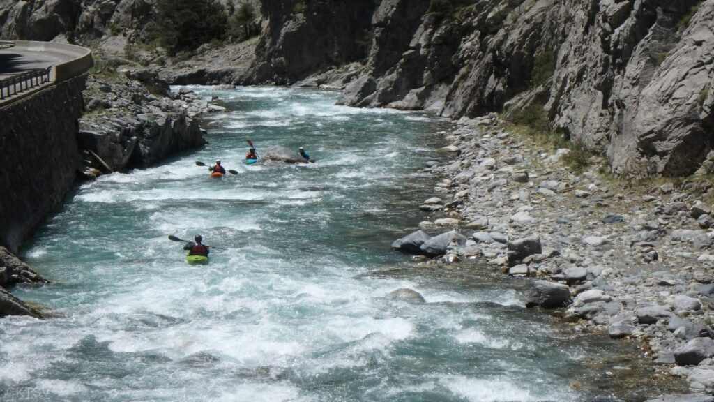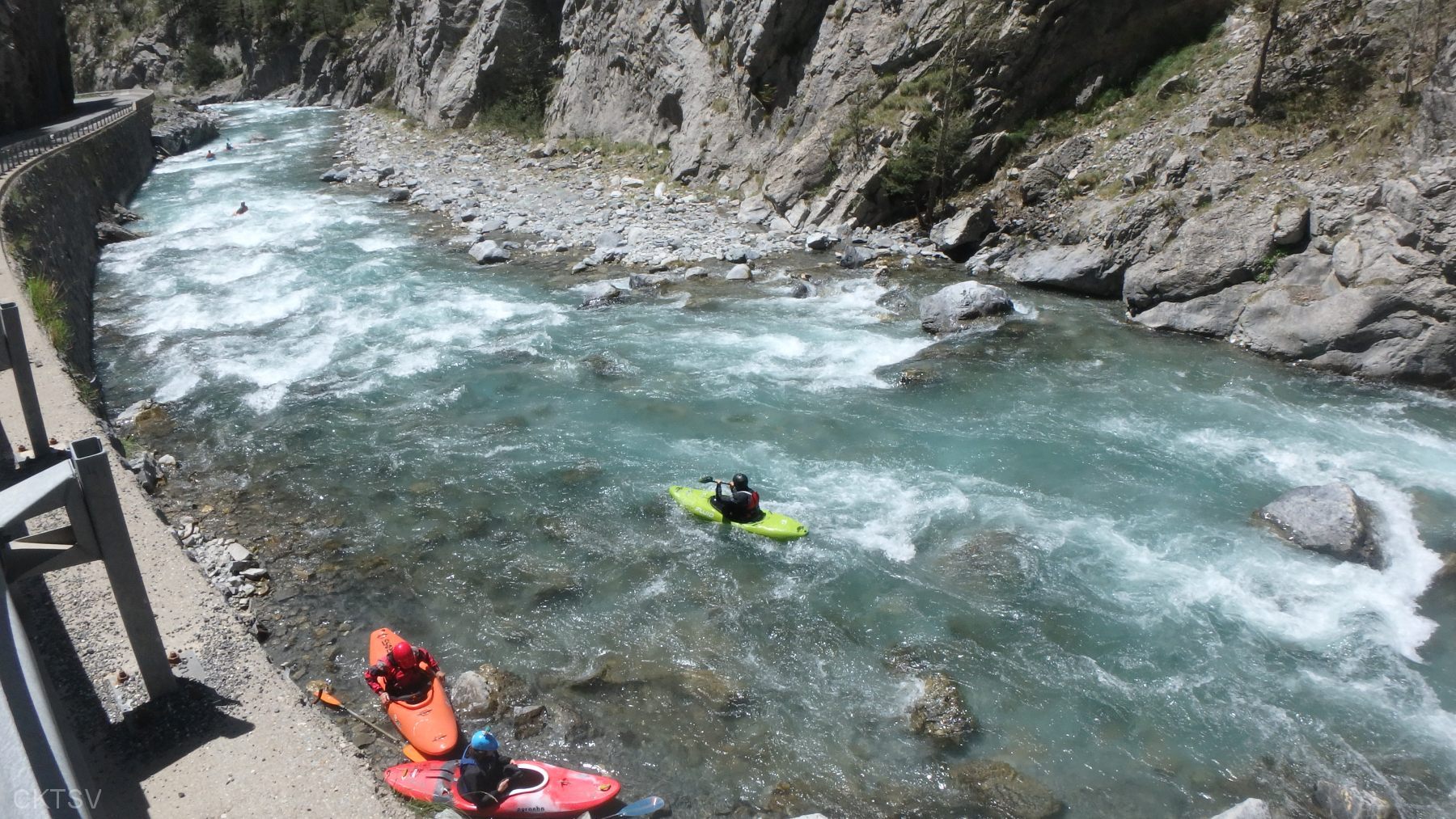 On a démarré depuis le col de vars, Bertrand a pété sa pagaie fragilisée par sa petite baignade de la veille, on a tout de même pu continuer la descente jusqu’à Guillestre où il a pu changer sa pagaie pour enchainer sur Château Queyras où il a de nouveau pris son bain ( à croire qu’il avait un peu chaud) il a décidé de s’arrêter là. On a poursuivi notre descente jusqu’à la triple chute où pour le coup il y a eu 2 bains !!! un pour Florian et un pour ma pomme (j’avais jamais vu une piscine aussi mouvementée). Ensuite on a continué jusqu’au lac de la maison du roy, Loïc s’était arrêté en route car il s’est aussi pris un bain. Fin du Guil !!!
