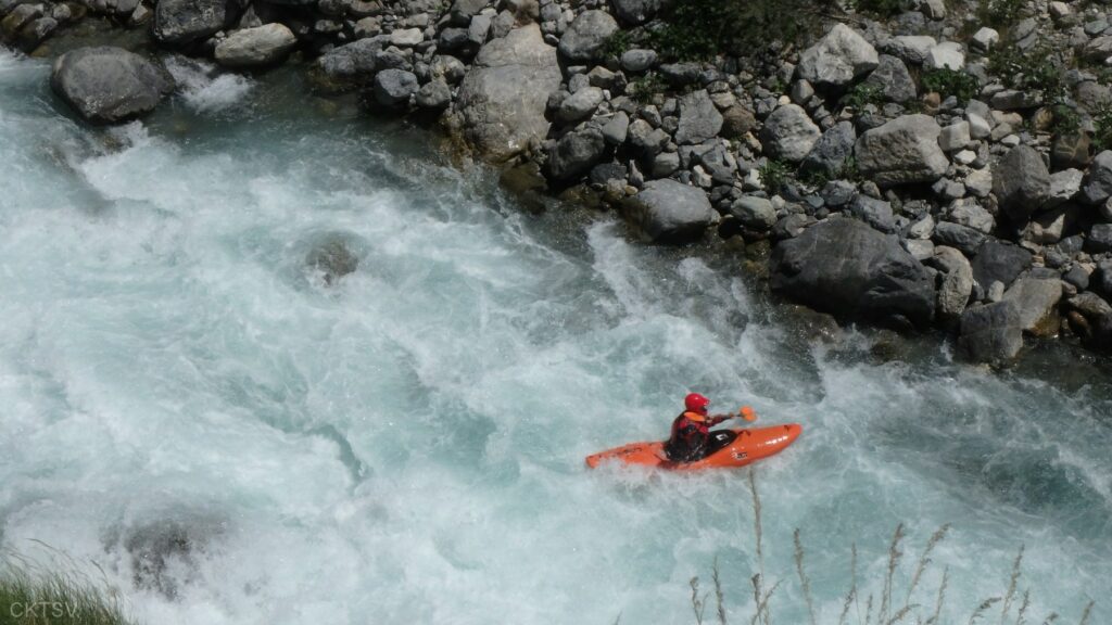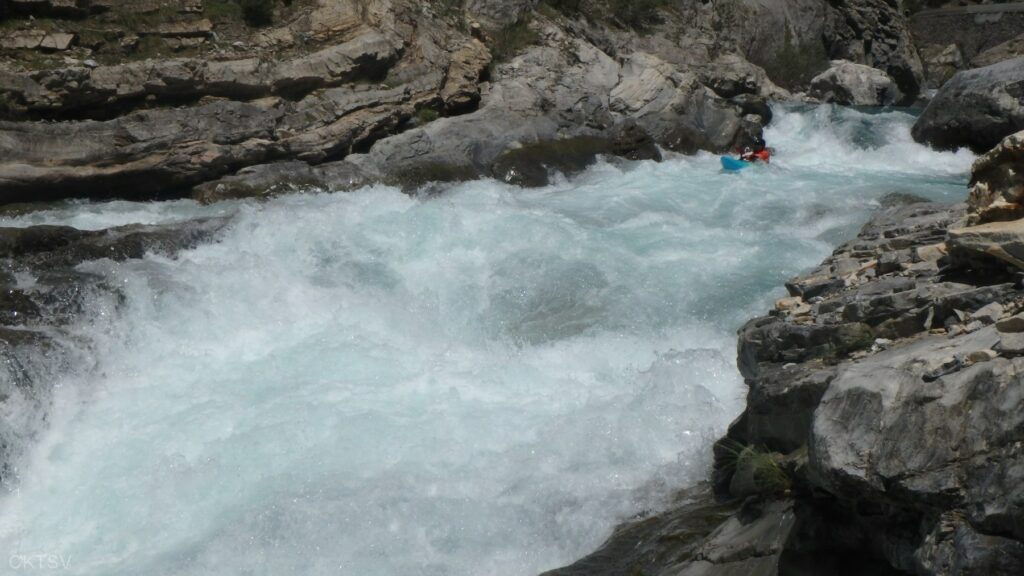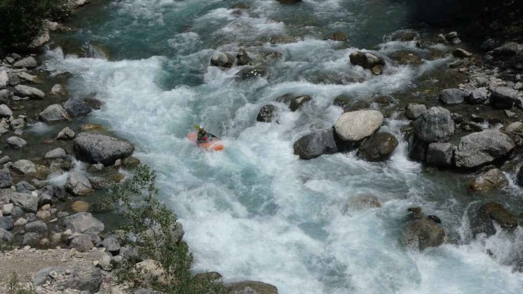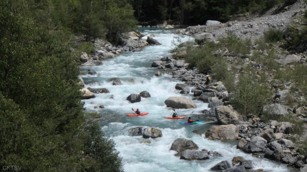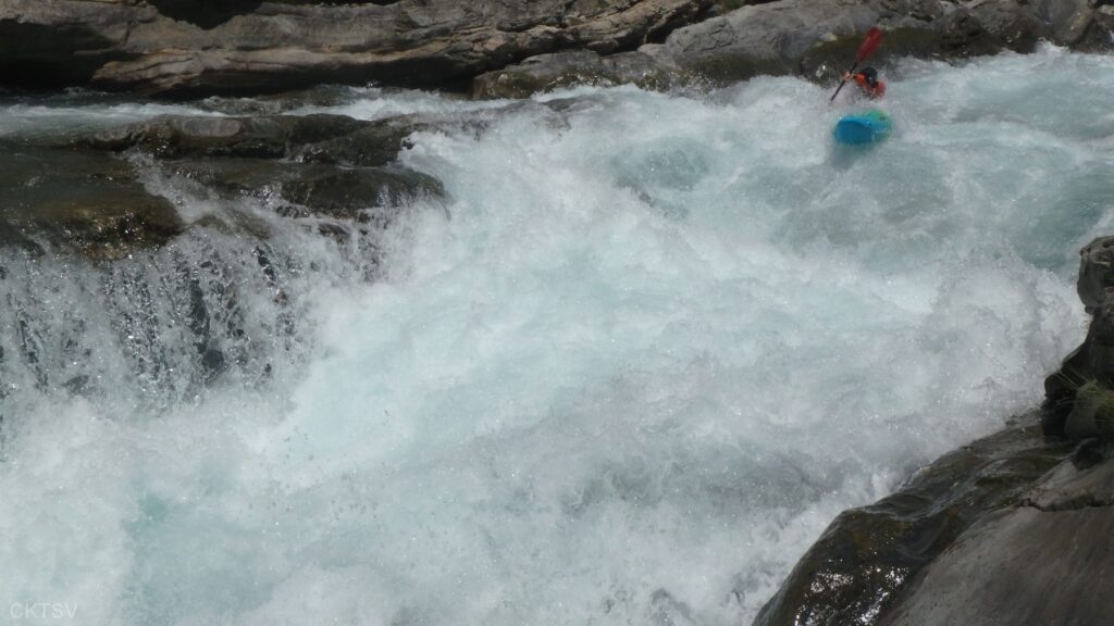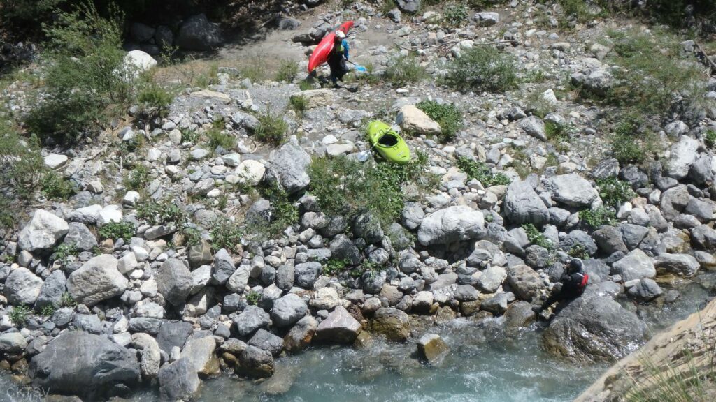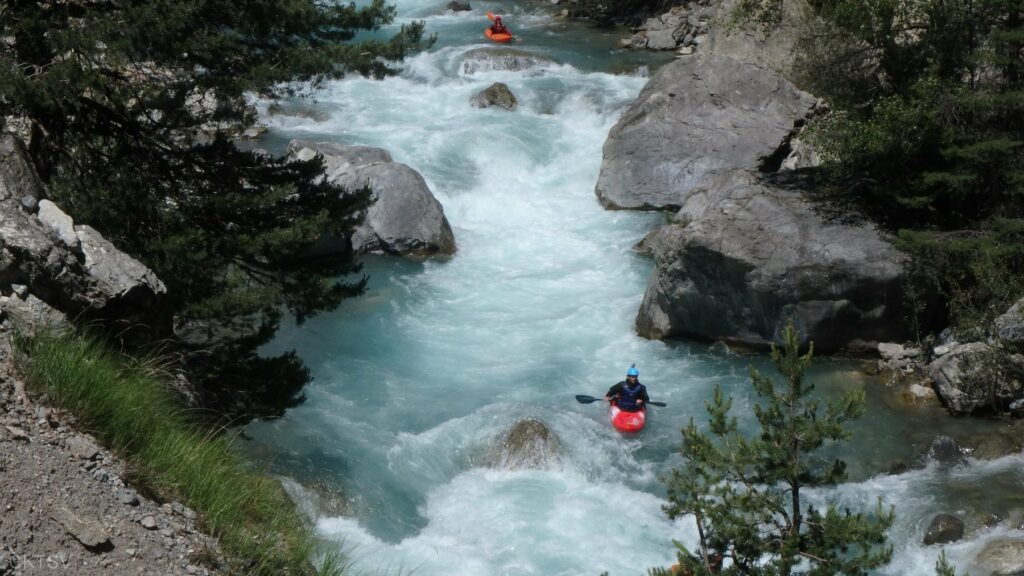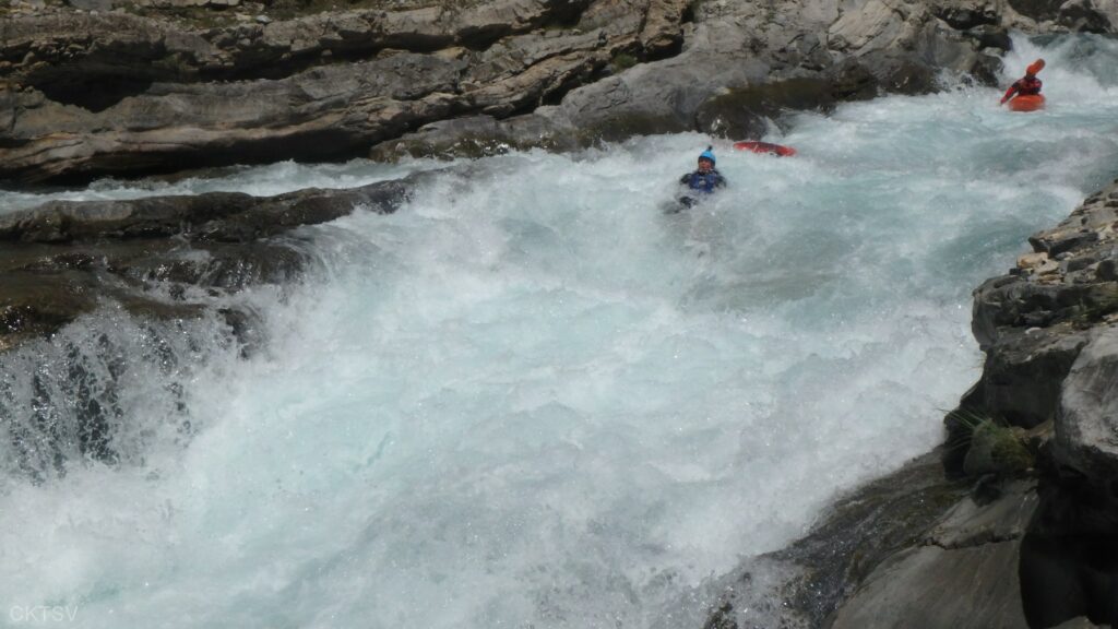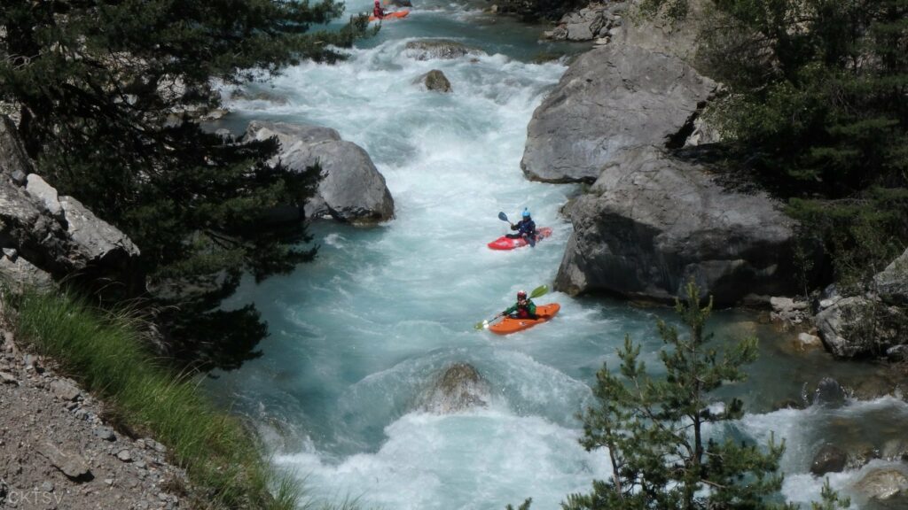 On a démarré depuis le col de vars, Bertrand a pété sa pagaie fragilisée par sa petite baignade de la veille, on a tout de même pu continuer la descente jusqu’à Guillestre où il a pu changer sa pagaie pour enchainer sur Château Queyras où il a de nouveau pris son bain ( à croire qu’il avait un peu chaud) il a décidé de s’arrêter là. On a poursuivi notre descente jusqu’à la triple chute où pour le coup il y a eu 2 bains !!! un pour Florian et un pour ma pomme (j’avais jamais vu une piscine aussi mouvementée). Ensuite on a continué jusqu’au lac de la maison du roy, Loïc s’était arrêté en route car il s’est aussi pris un bain. Fin du Guil !!!