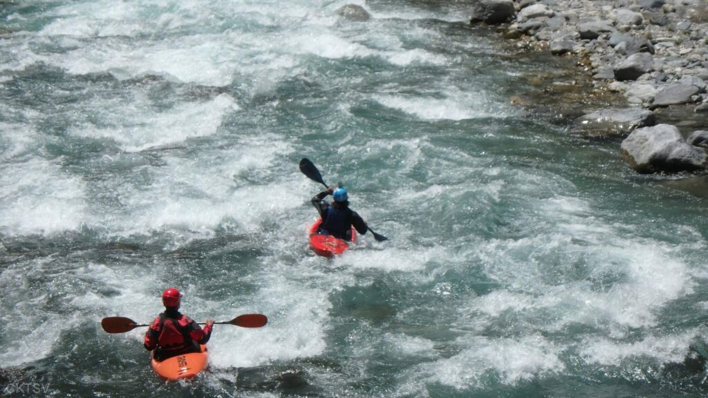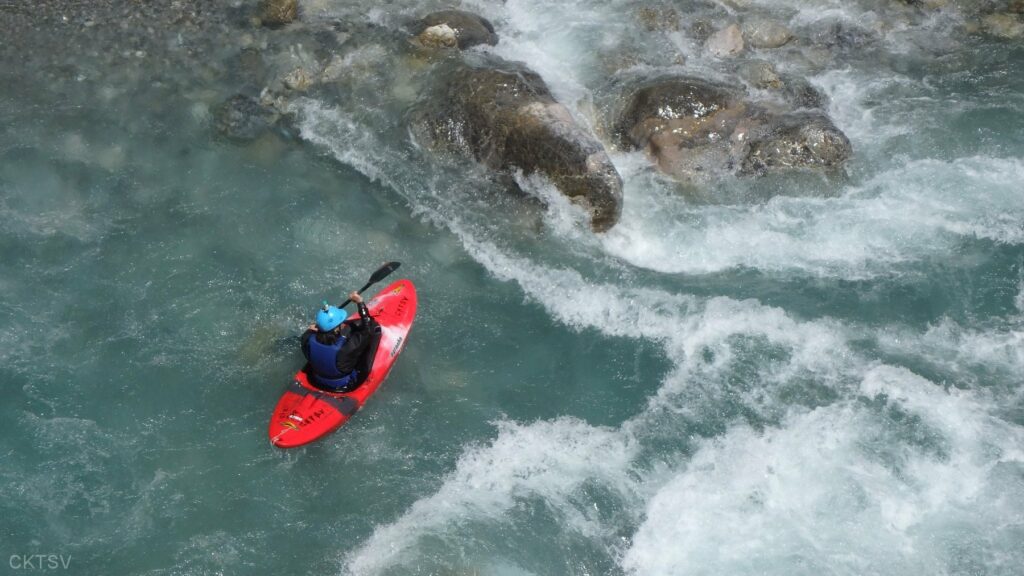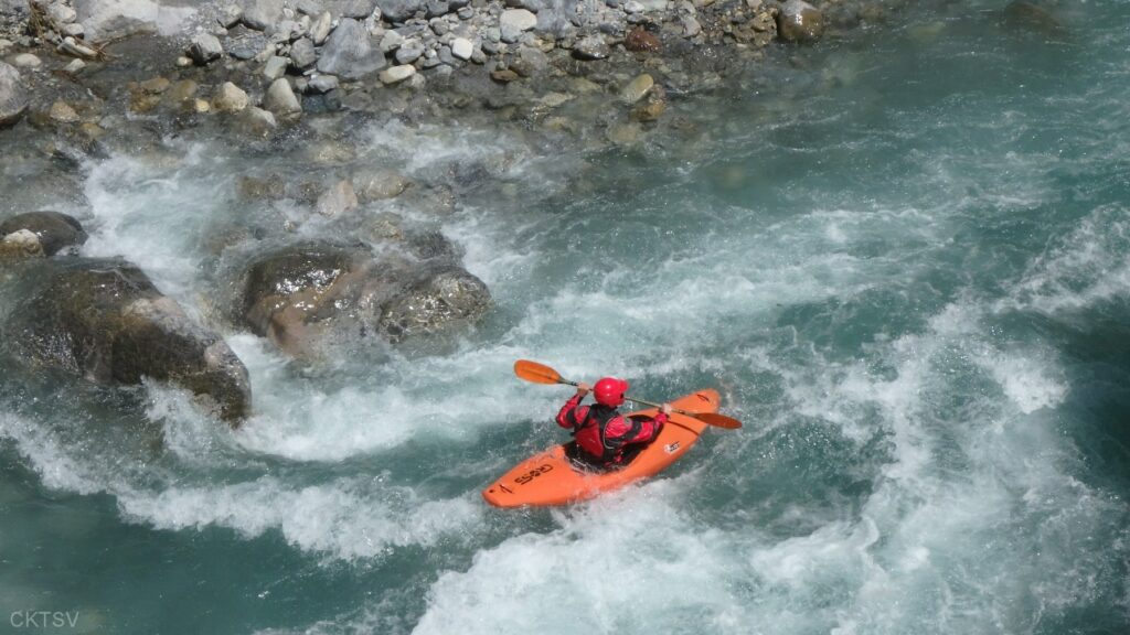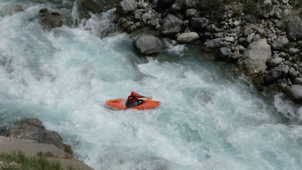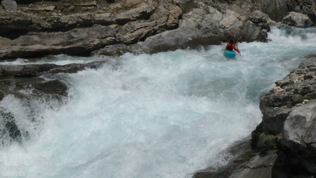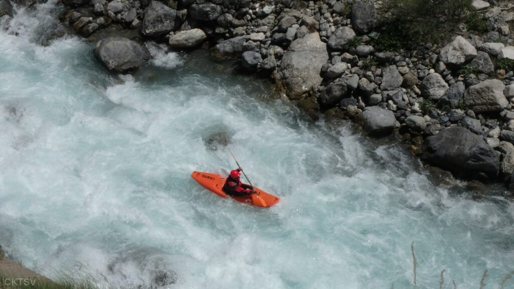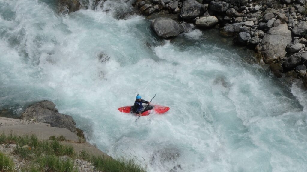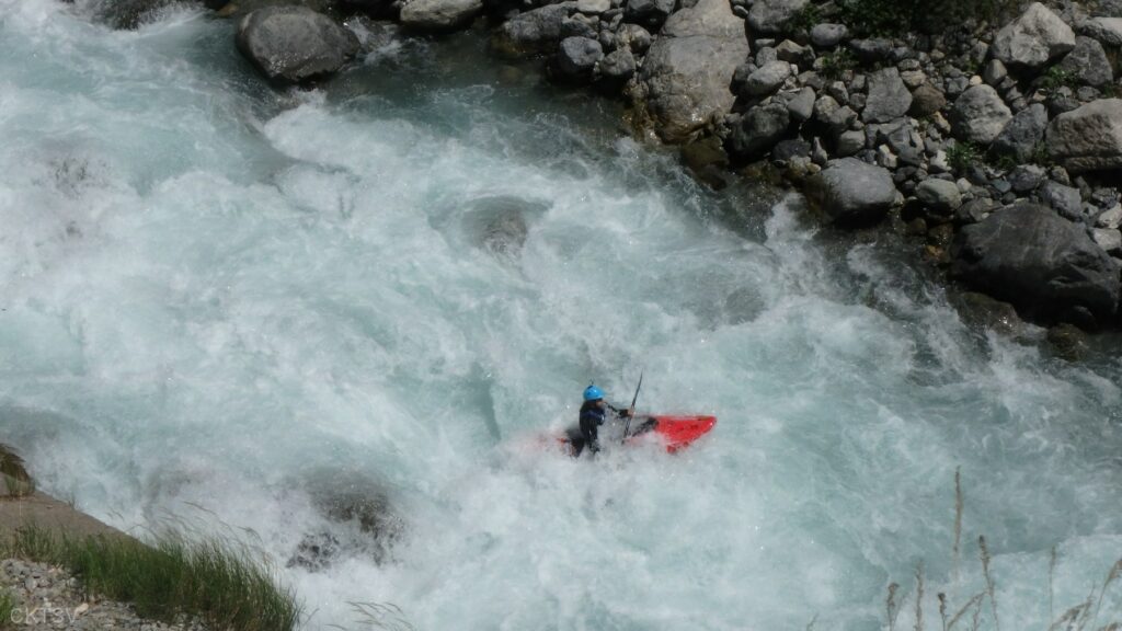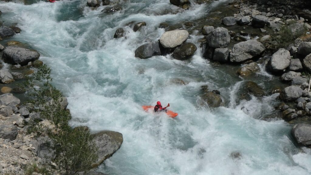 On a démarré depuis le col de vars, Bertrand a pété sa pagaie fragilisée par sa petite baignade de la veille, on a tout de même pu continuer la descente jusqu’à Guillestre où il a pu changer sa pagaie pour enchainer sur Château Queyras où il a de nouveau pris son bain ( à croire qu’il avait un peu chaud) il a décidé de s’arrêter là. On a poursuivi notre descente jusqu’à la triple chute où pour le coup il y a eu 2 bains !!! un pour Florian et un pour ma pomme (j’avais jamais vu une piscine aussi mouvementée). Ensuite on a continué jusqu’au lac de la maison du roy, Loïc s’était arrêté en route car il s’est aussi pris un bain. Fin du Guil !!!