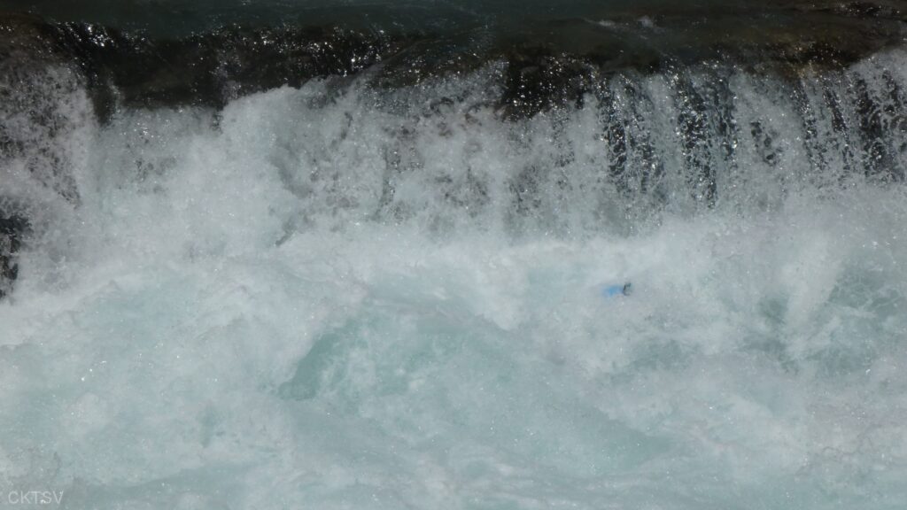 Une fois la compétition terminée (vers 18h) on a pu naviguer les ex du haut, on est partis à 4 (bertrand, florian, guillaume et moi) guillaume ayant perdu sa pagaie sur un des premiers rapides , a du nous laisser continuer seul. Sur le « dessert » on a pu assister aussi à un jolie bain de Bertrand. Fin de la descente !